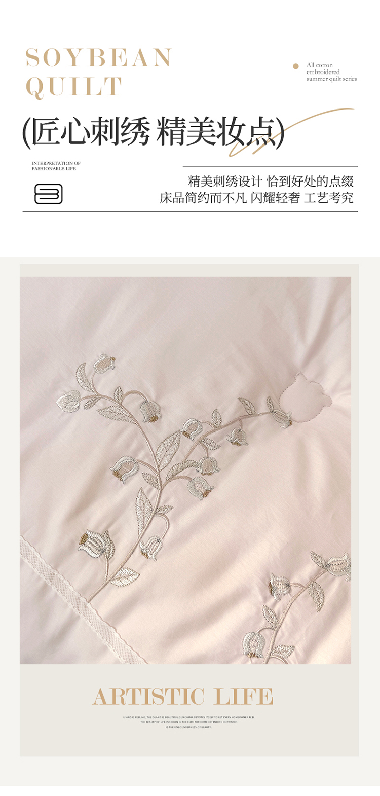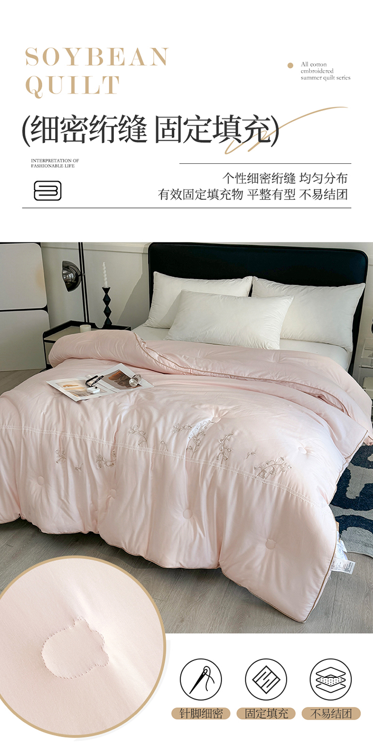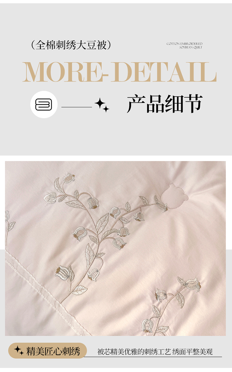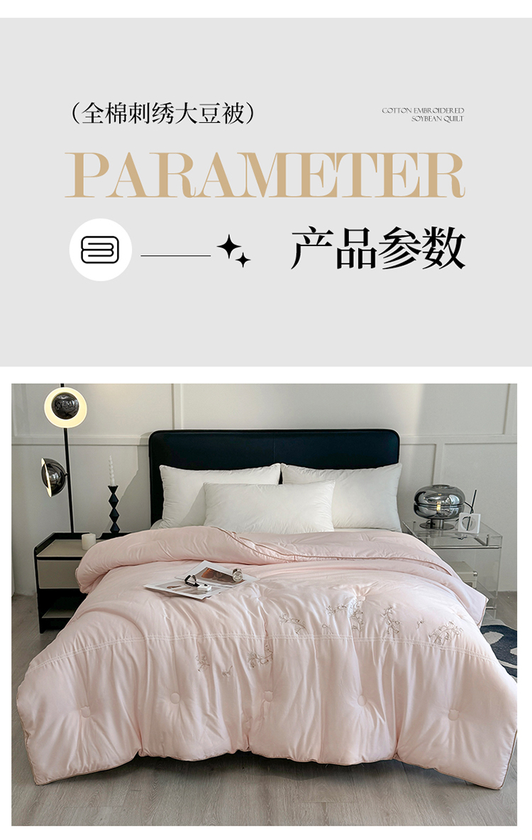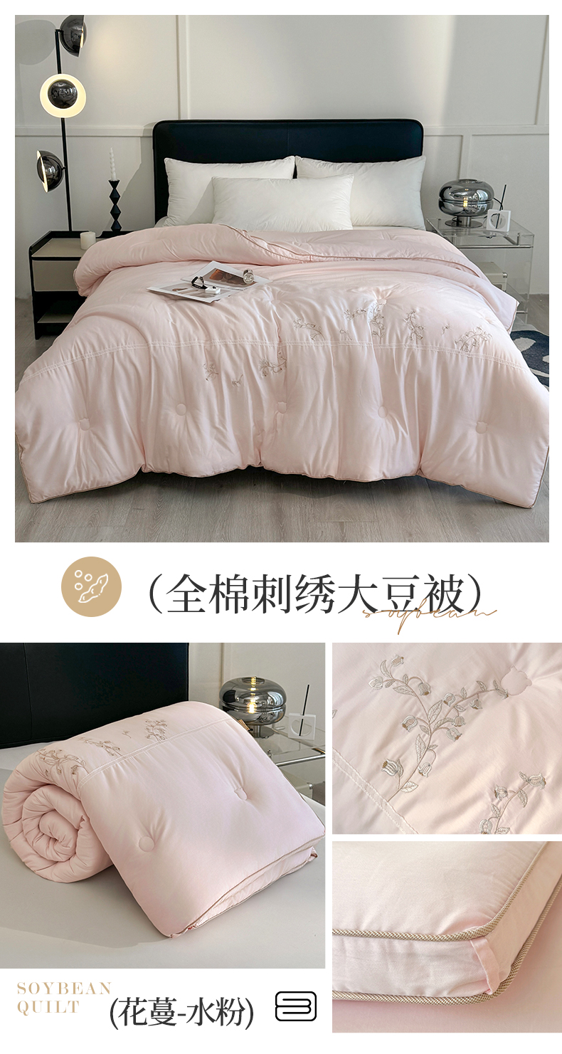 商品名称:2024新款60s全棉立体刺绣大豆被子被芯 花蔓-水粉