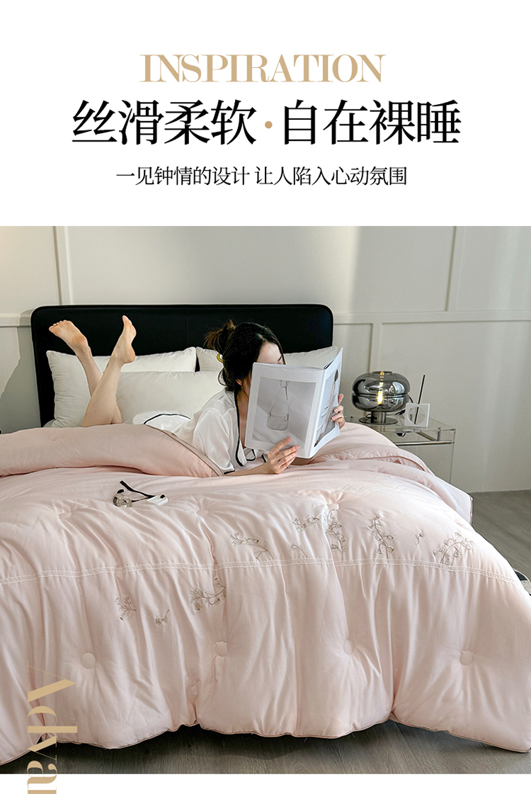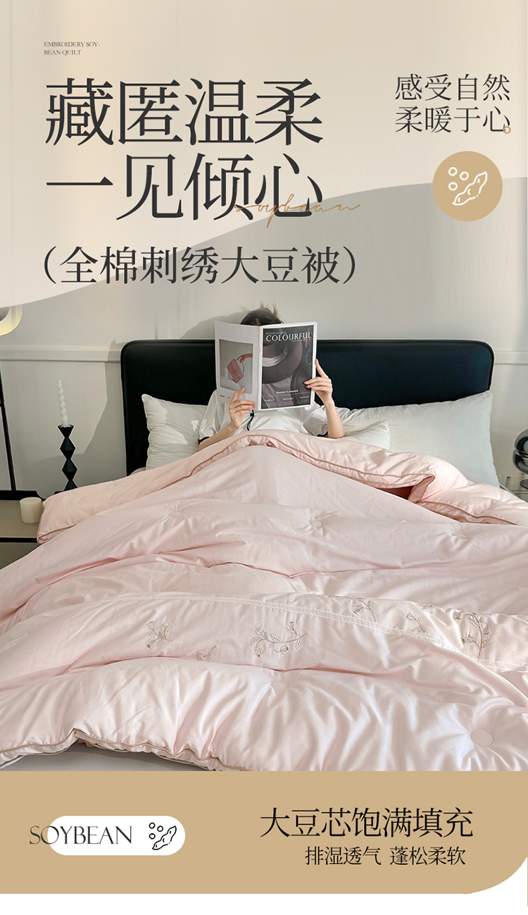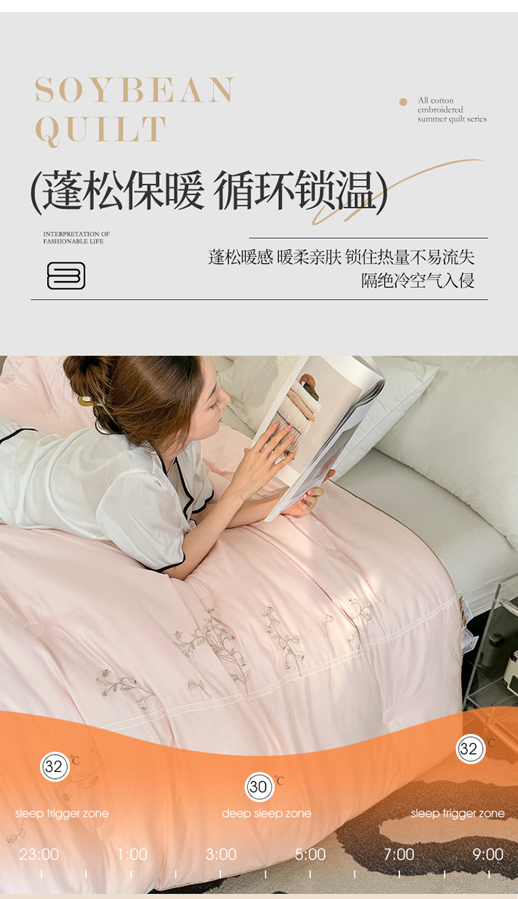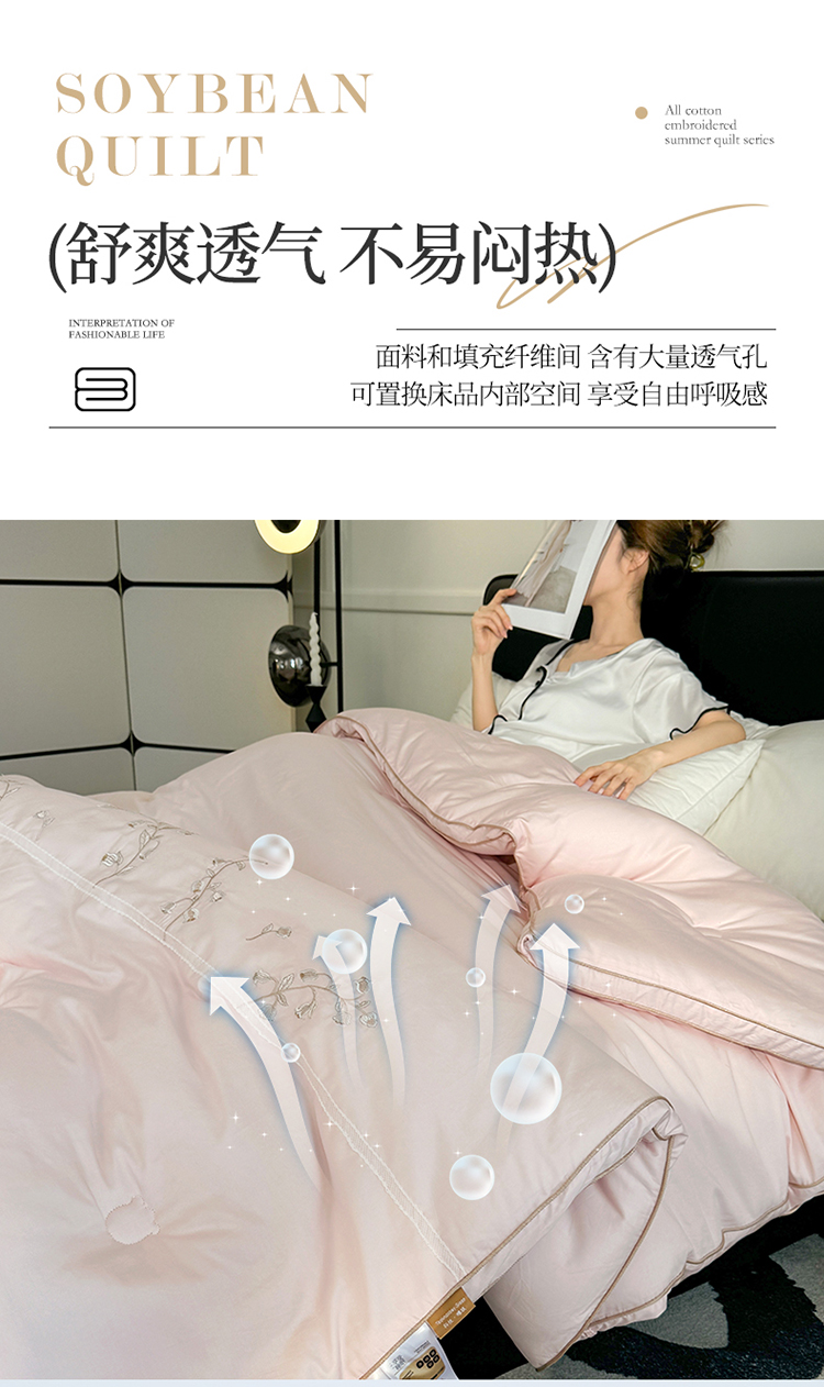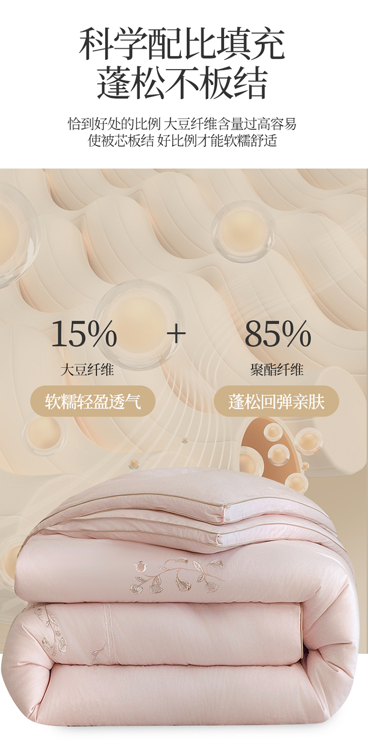 商品名称:2024新款60s全棉立体刺绣大豆被子被芯 花蔓-水粉
