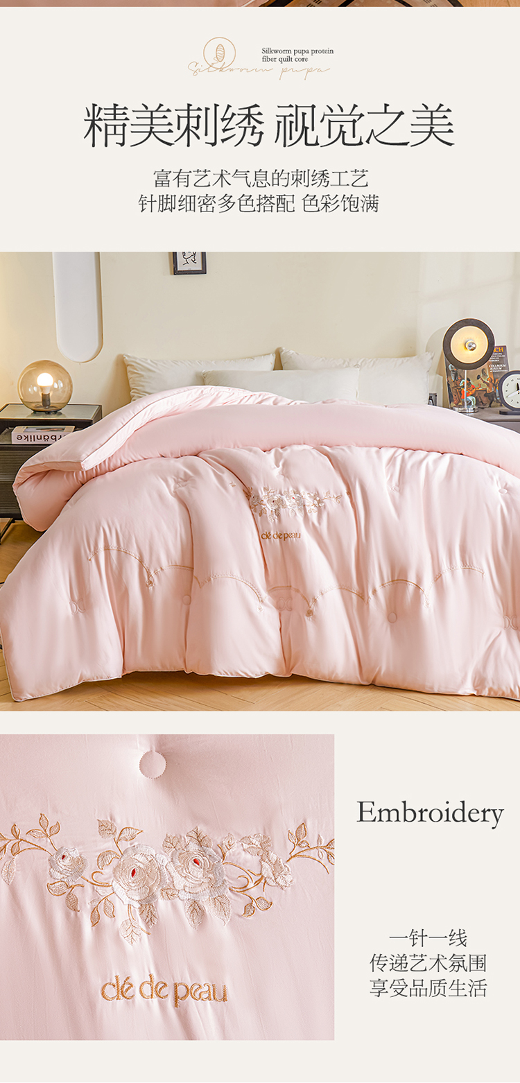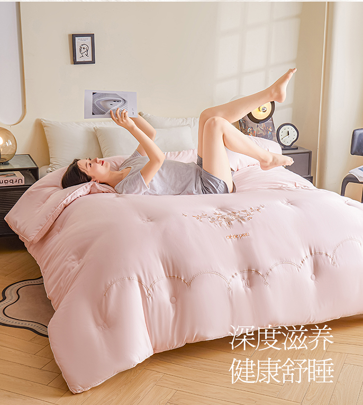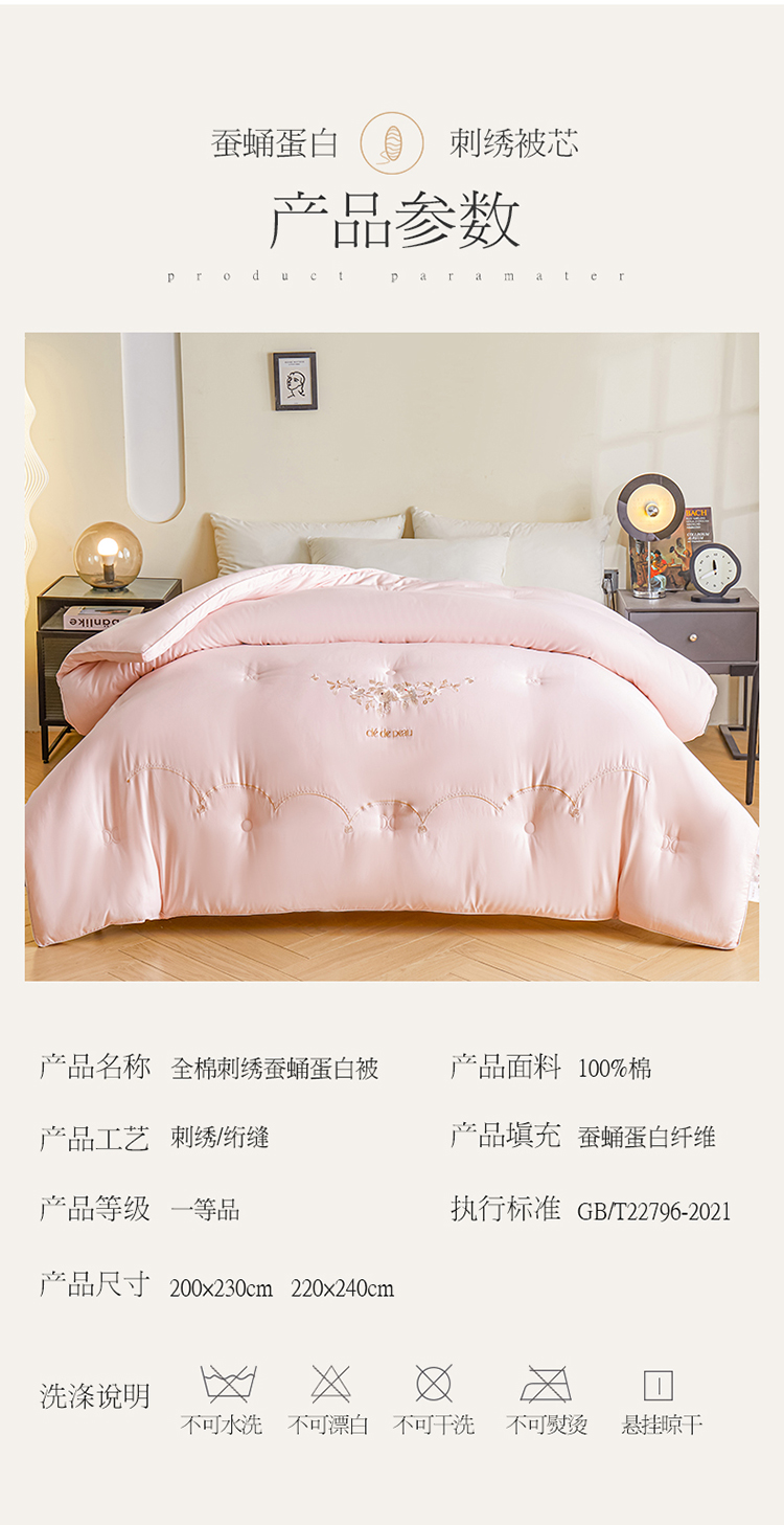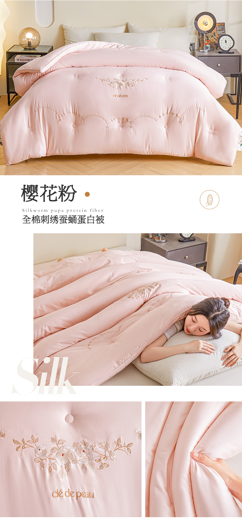 商品名称:2024新款60s全棉立体刺绣蚕蛹蛋白被子被芯 樱花粉
