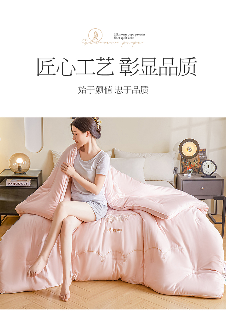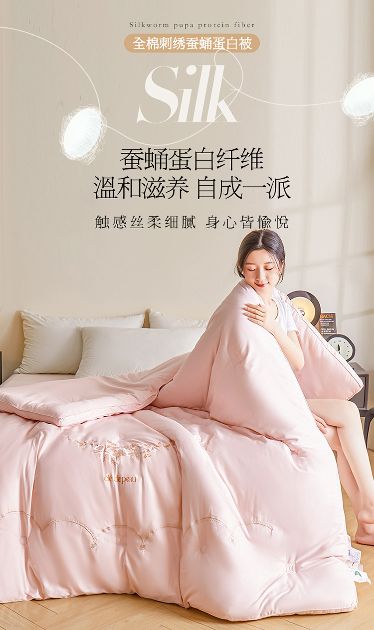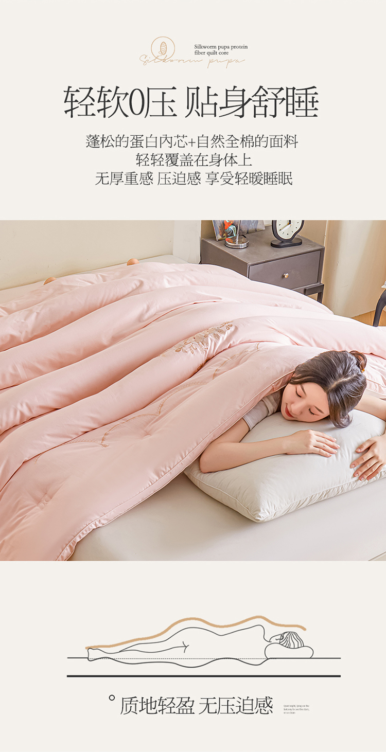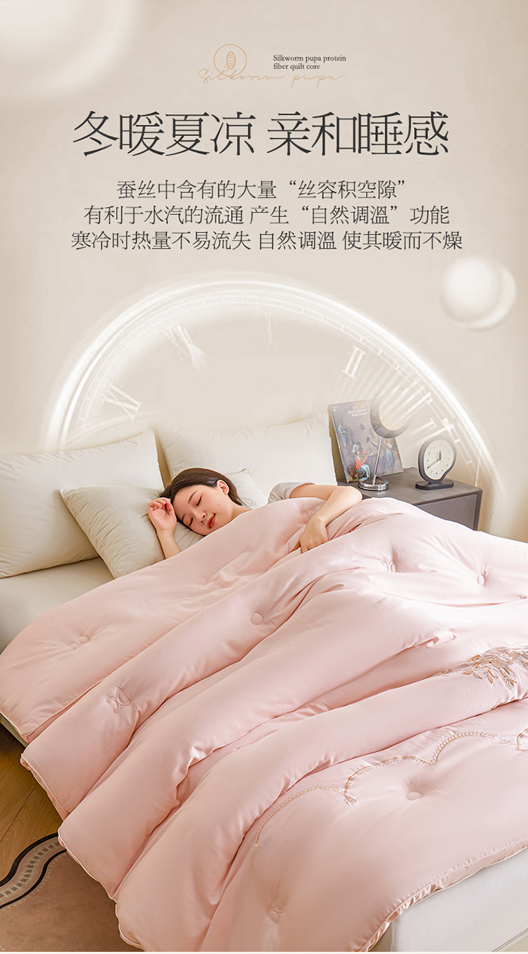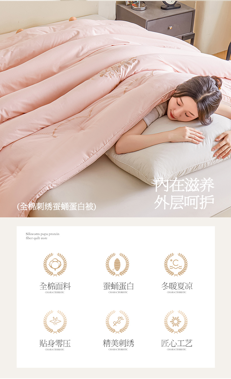 商品名称:2024新款60s全棉立体刺绣蚕蛹蛋白被子被芯 樱花粉