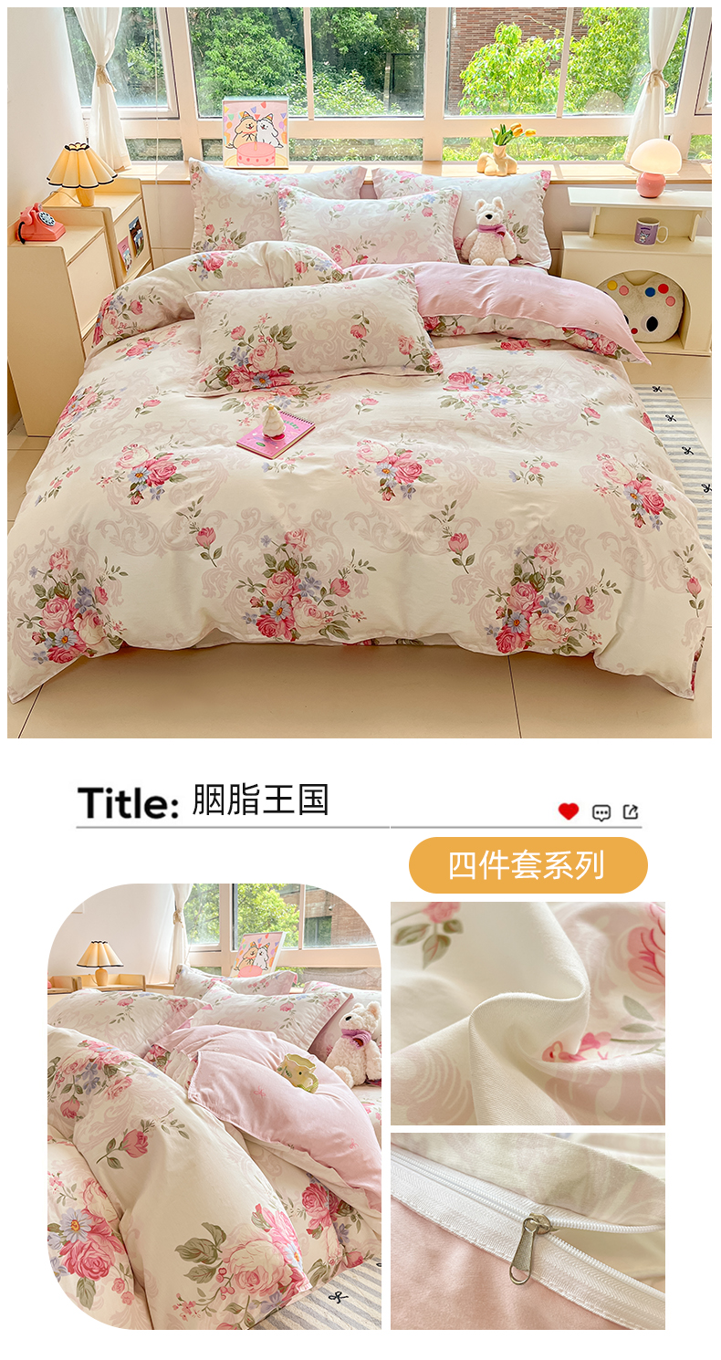 当前位置: 91家纺网 > 商品网购 > 床品套件 > 四件套 > 全棉普通四件套 > 铭成家纺 2024新款新疆棉喷气印花小清新系列四件套 胭脂玉园