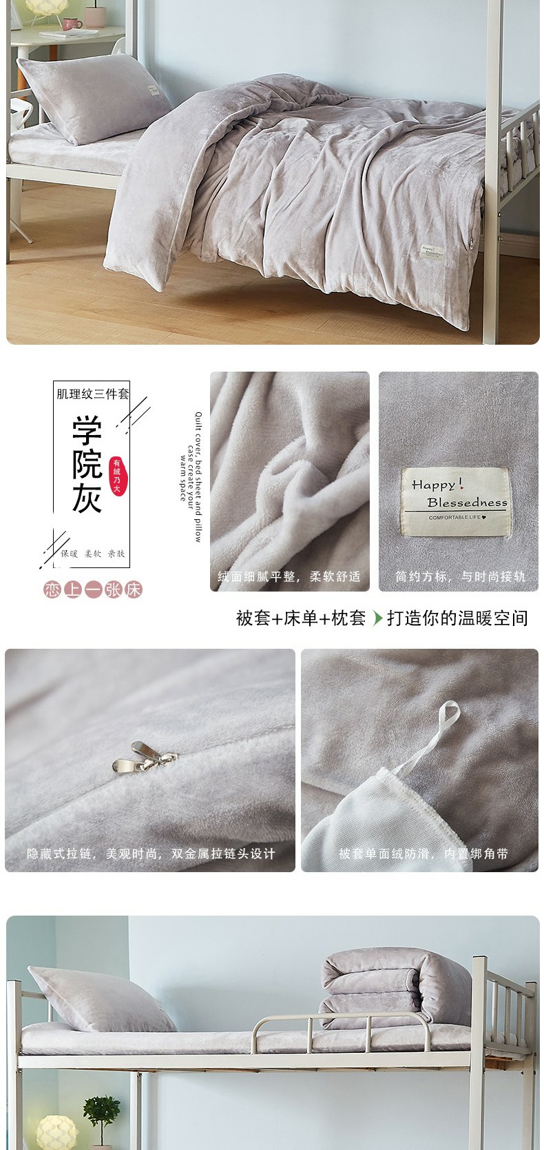 商品名称:爱港家纺 2024新款牛奶绒法兰绒加厚保暖三件套床笠床单款 学院灰