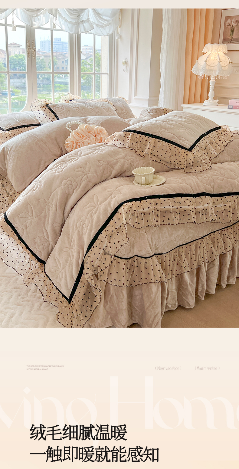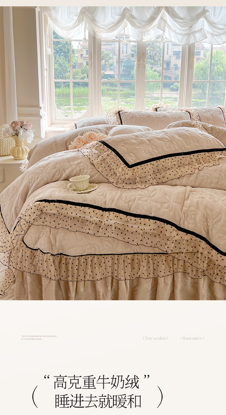 (总)网红馆(ck家纺) 2025新款牛奶绒花边床盖四件套-甜蜜蜜,甜蜜蜜-粉,甜蜜蜜-咖,甜蜜蜜-绿,甜蜜蜜-米,甜蜜蜜-紫