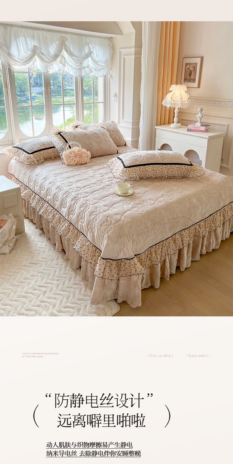 (总)网红馆(ck家纺) 2025新款色织提花牛奶绒床裙四件套-洛丽塔系列,洛丽塔-豆沙,洛丽塔-蓝色,洛丽塔-米色