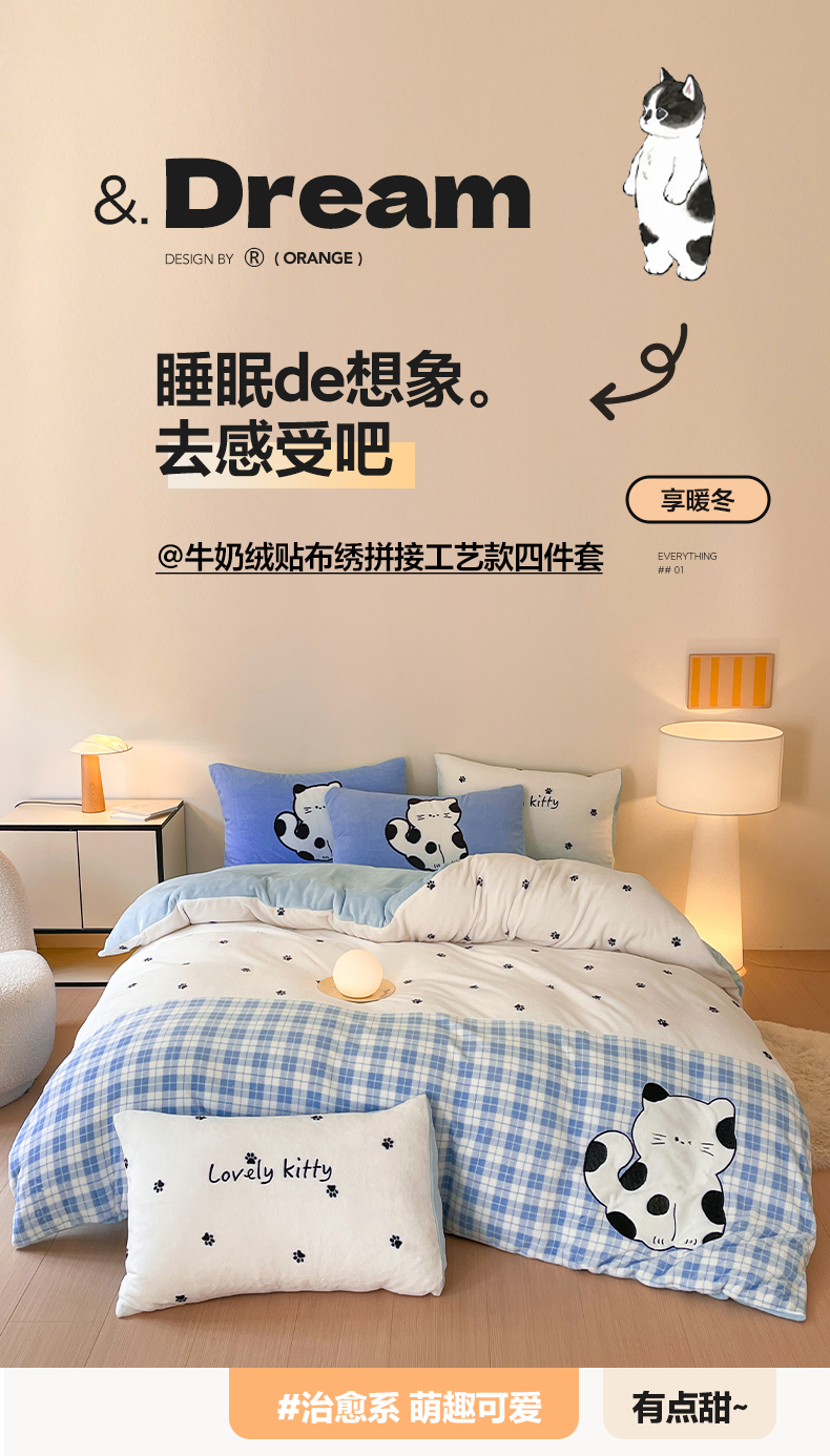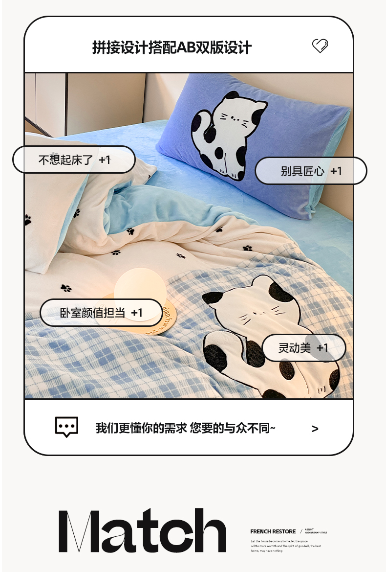 (总)如一 2025新款高克重大版数码印花牛奶绒四件套,毛毛狗,猫咪酱,俏皮狗,色彩猫,小熊仔,熊猫咖,游乐园,粉伙伴,拉兔咖,萌宠黄,萌宠绿,萌派对,围巾狗,线条狗,小粉喵,小花喵,小伙伴