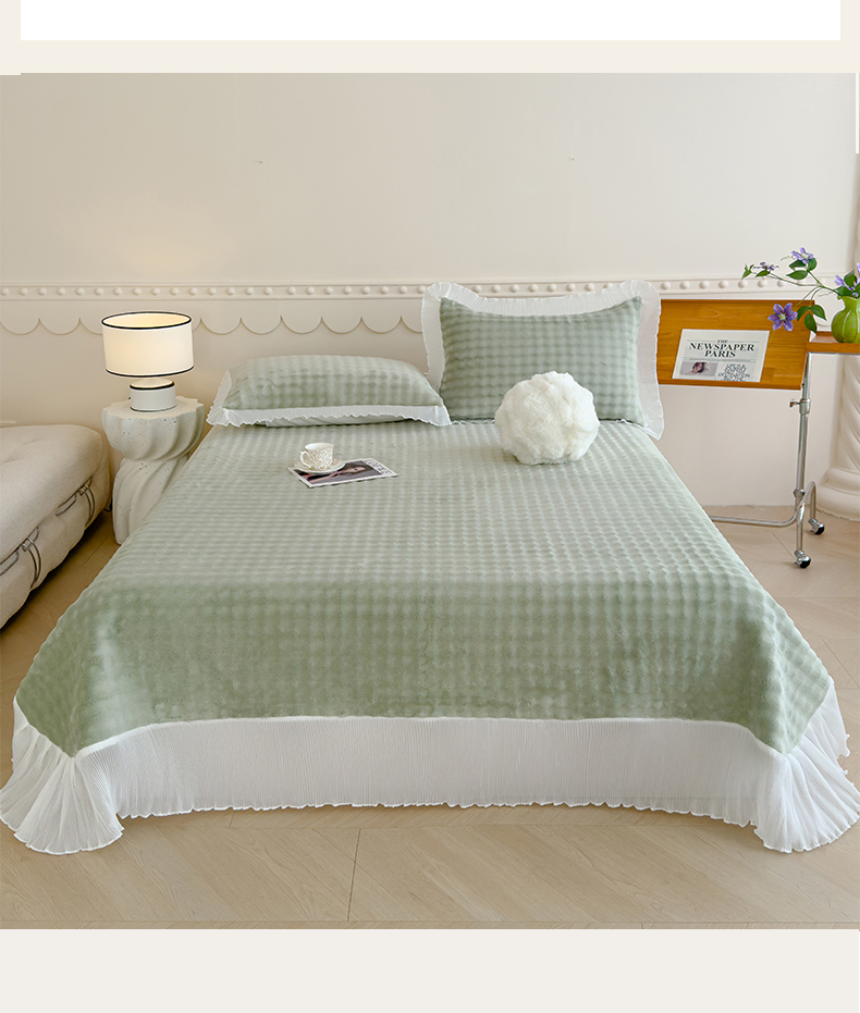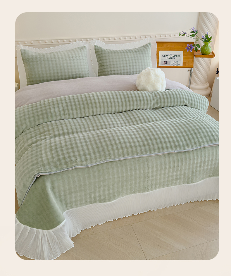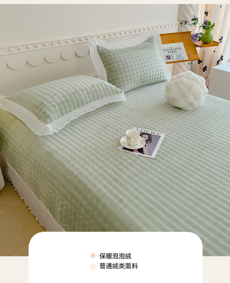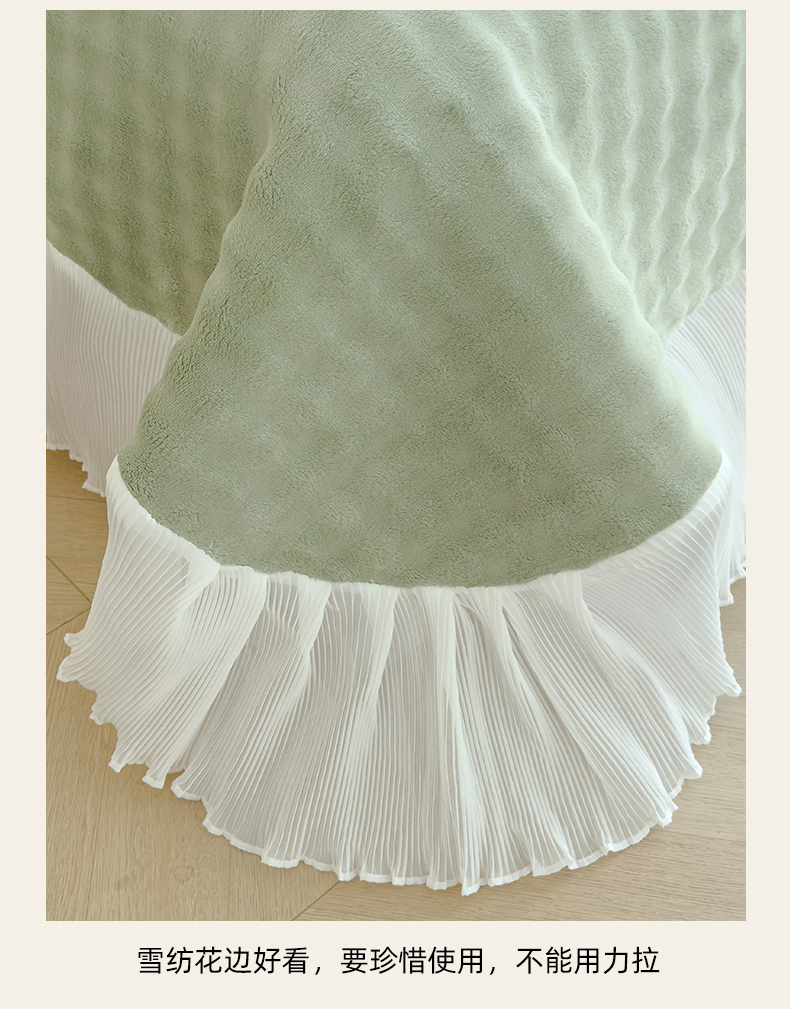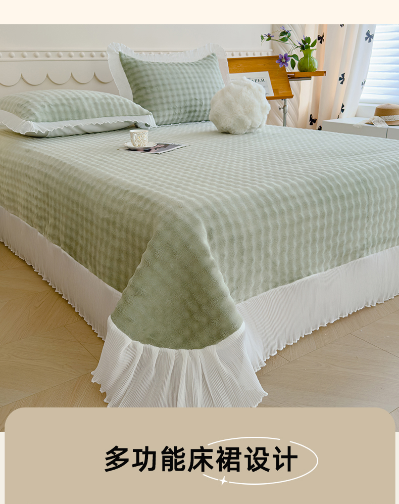 商品名称:冬然家纺 2024新款泡泡绒床裙四件套系列 泡泡绒-抹茶绿