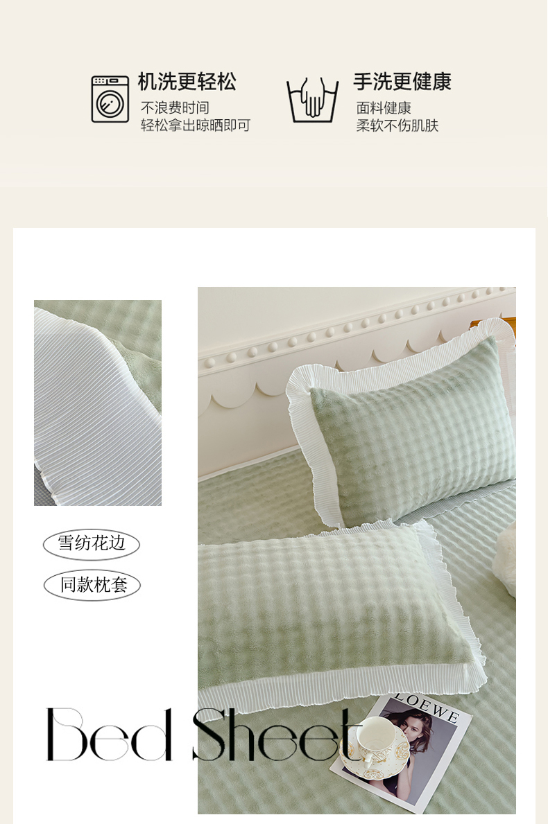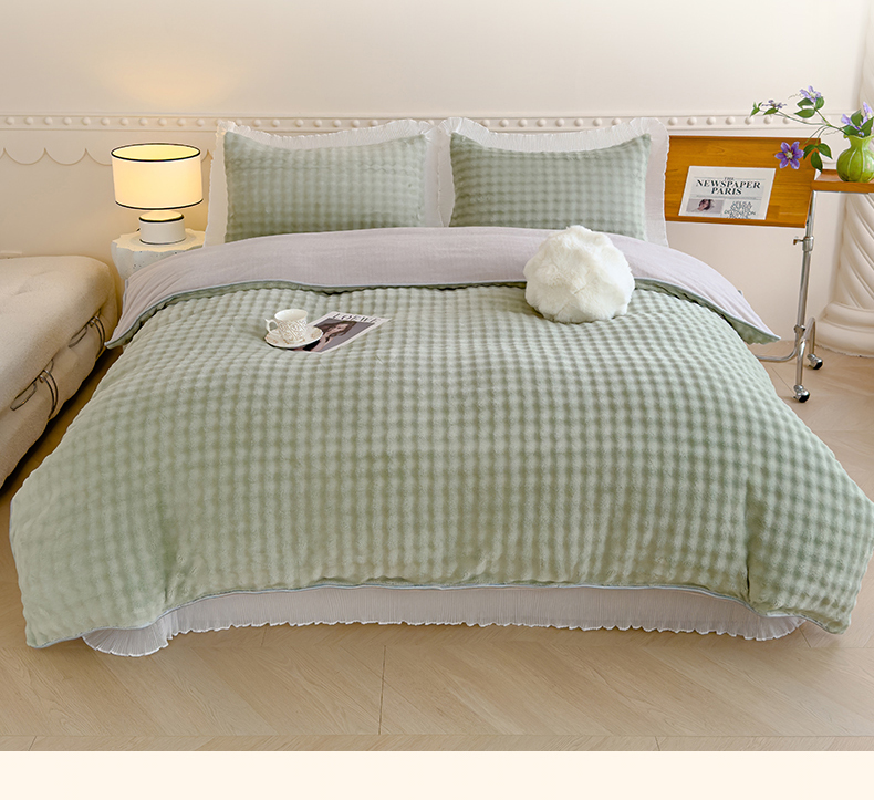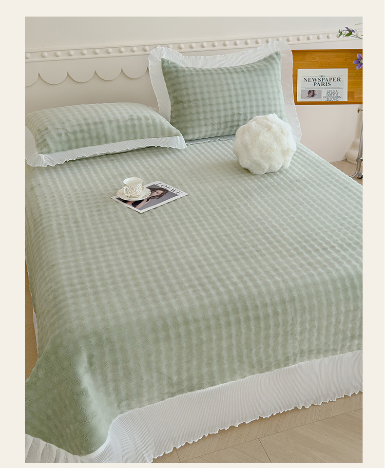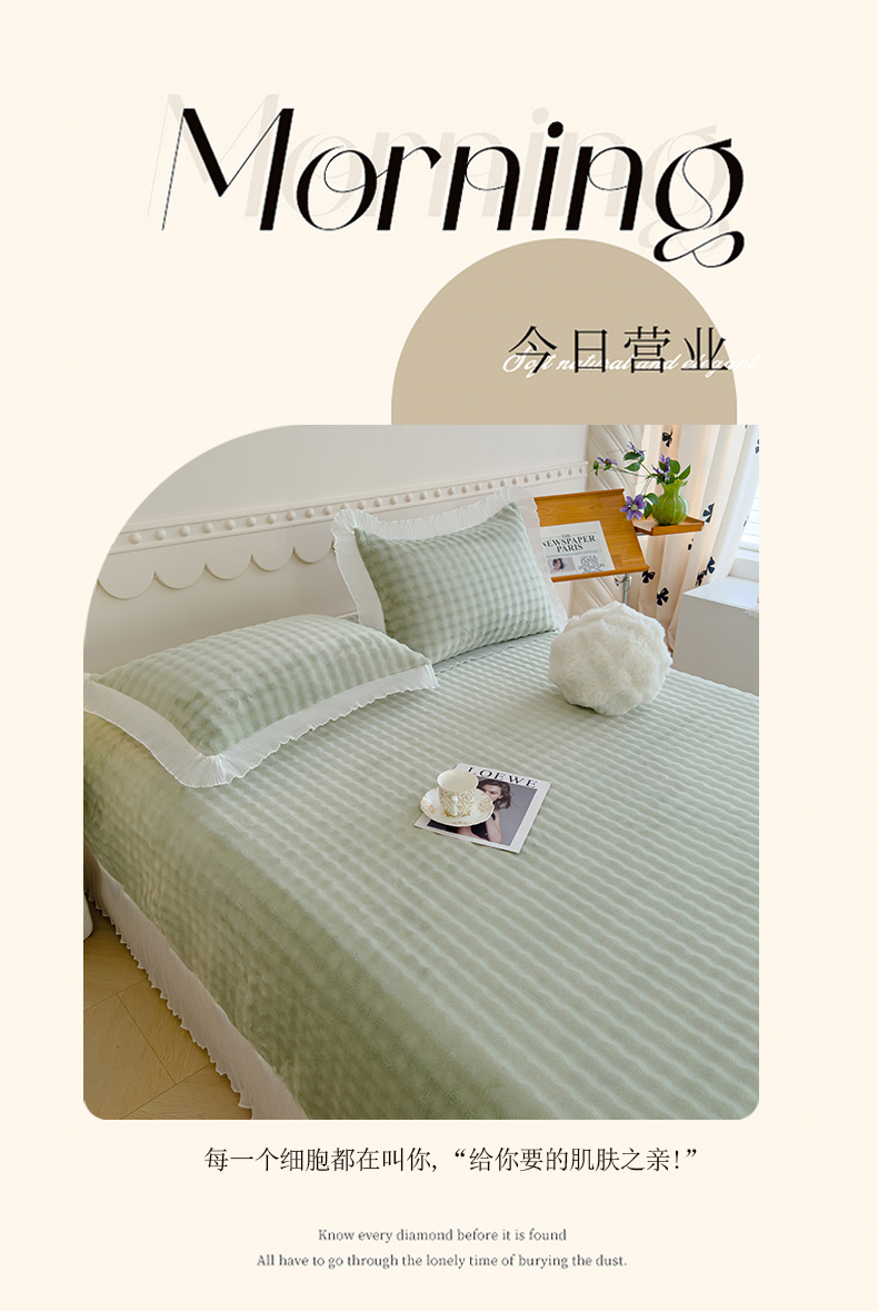 商品名称:冬然家纺 2024新款泡泡绒床裙四件套系列 泡泡绒-抹茶绿
