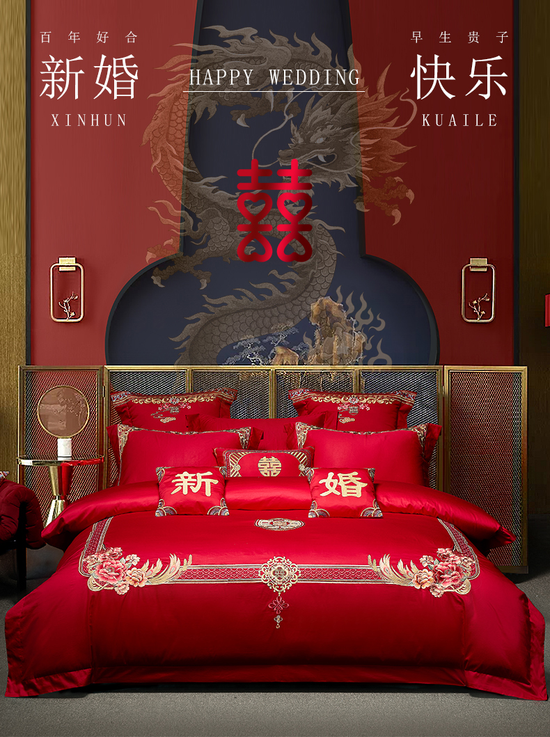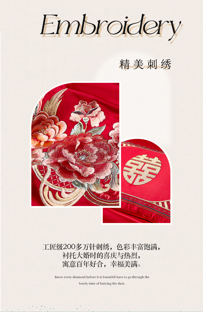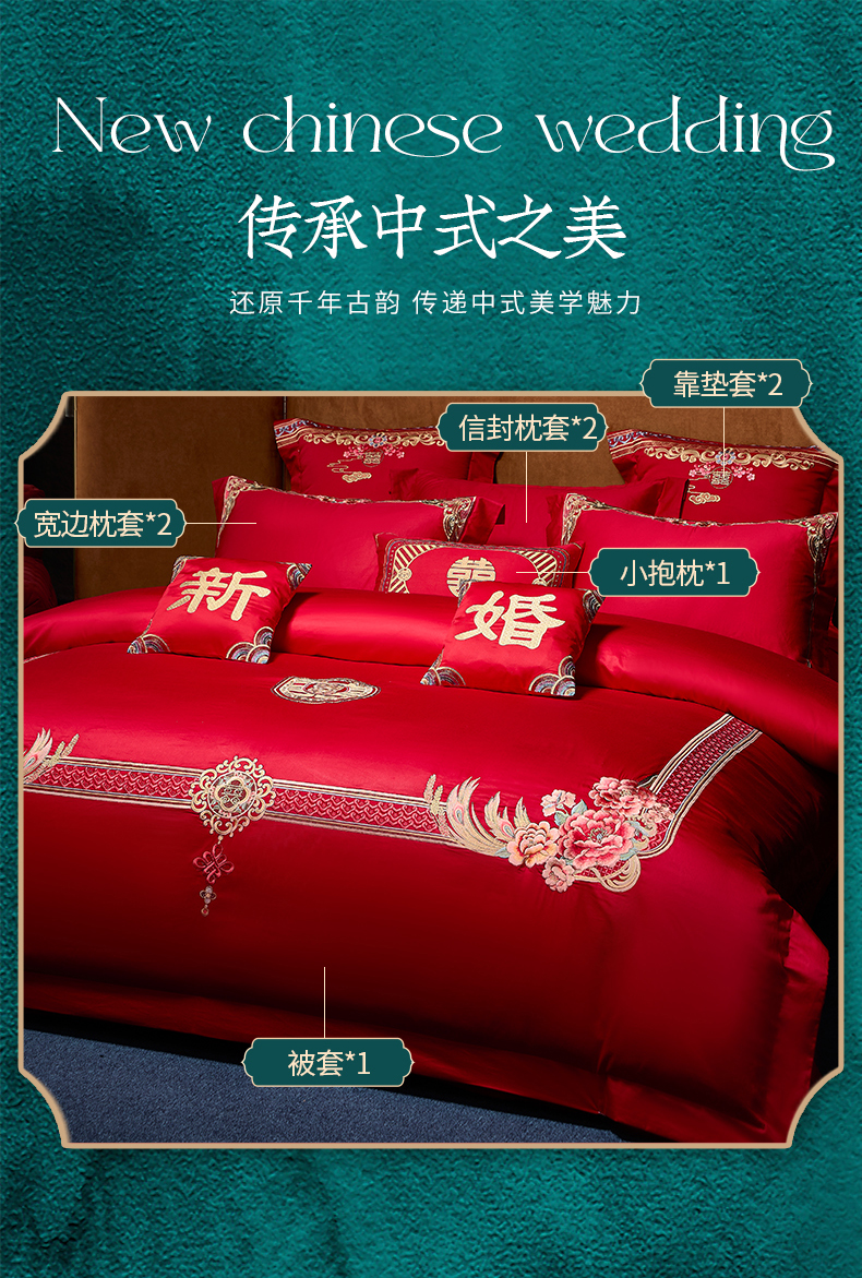 当前位置: 91家纺网 > 商品网购 > 床品套件 > 四件套 > 婚庆四件套 > 高大尚 2025新款长绒棉囍嫁系列四件套 爱意花语