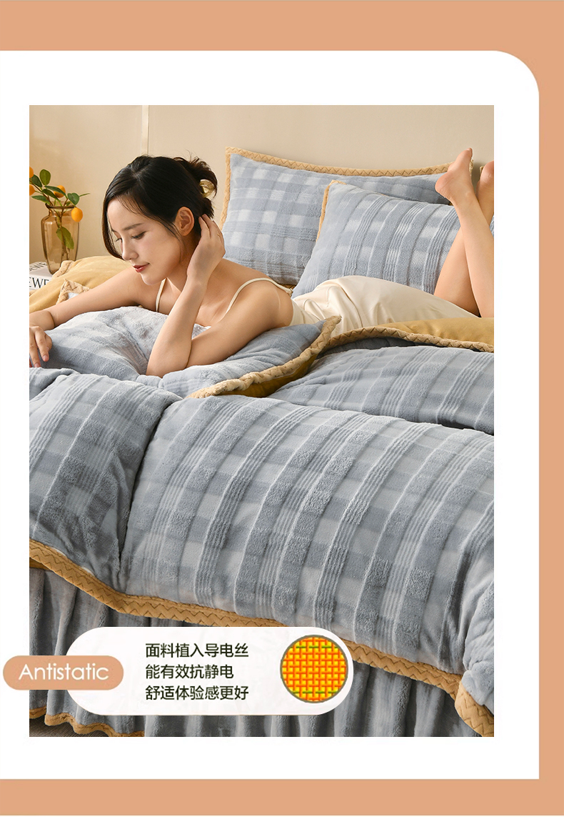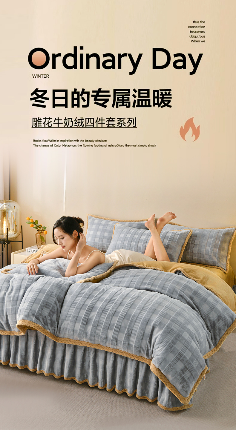 满羽 2024新款雕花牛奶绒四件套 雅致格调-蓝灰