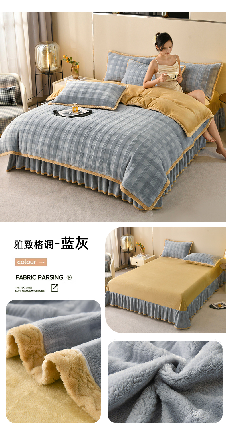 商品名称:满羽 2024新款雕花牛奶绒四件套 雅致格调-蓝灰
