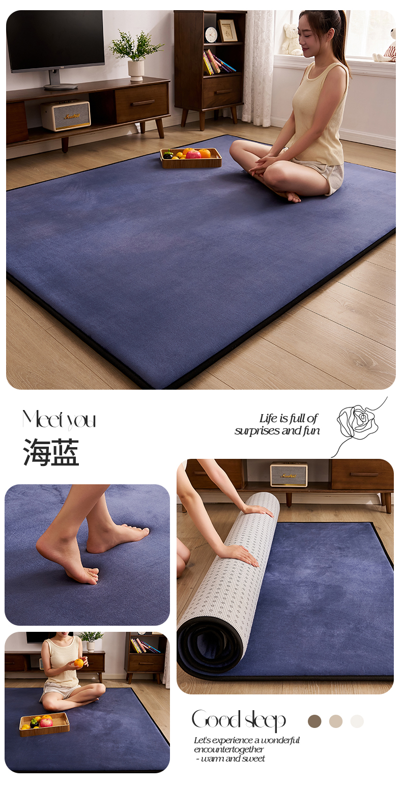 • 91家纺网 家纺一手货源 找家纺 2024新款高克重牛奶绒海绵地垫 海蓝