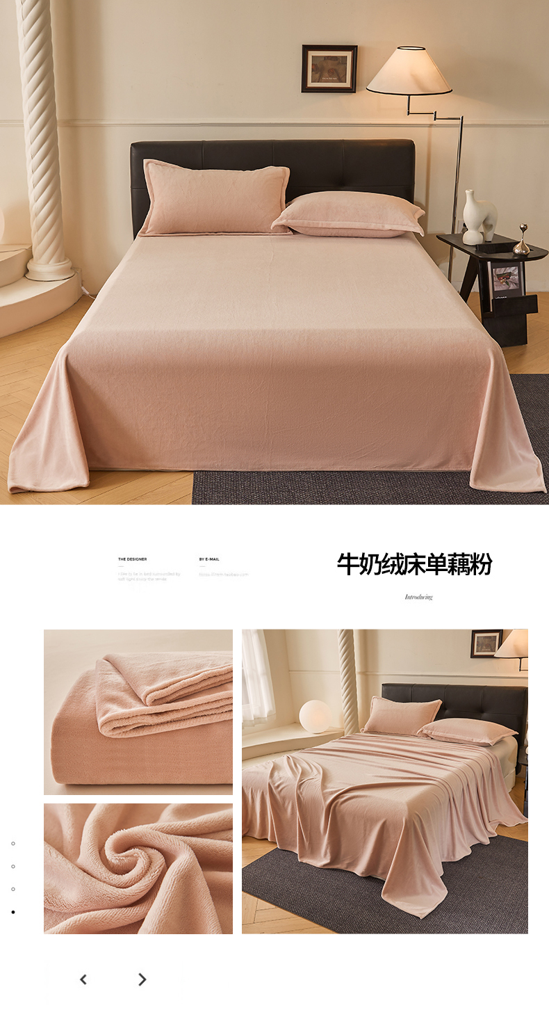 雅萱家纺 2024新款纯色牛奶绒床单 牛奶绒床单藕粉