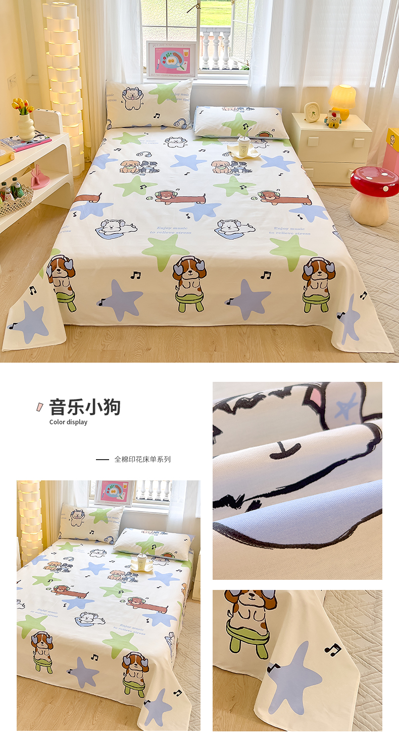 拾物记 2024新款全棉喷气12868床单 音乐小狗