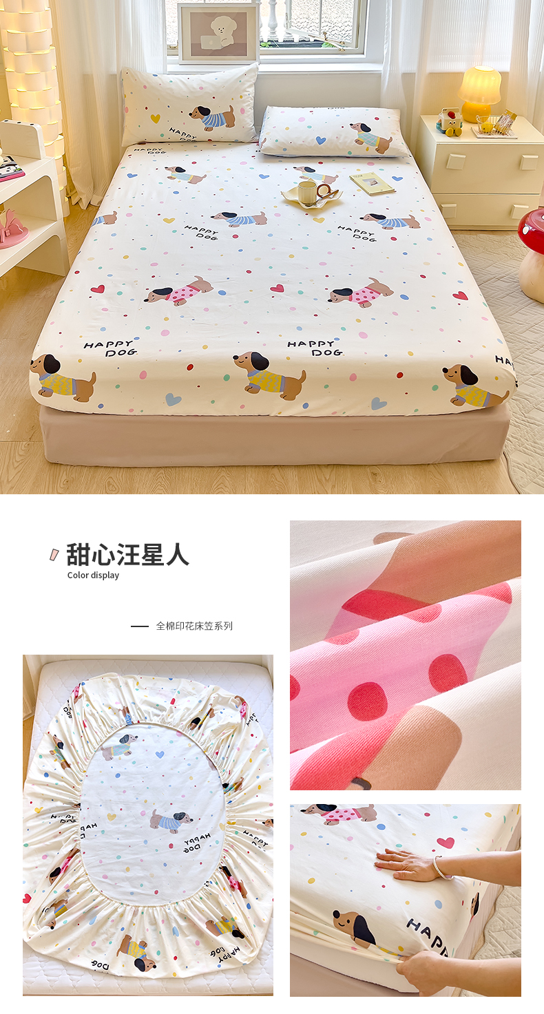 商品名称:拾物记 2024新款A类12868全棉喷气床笠 甜心汪星人