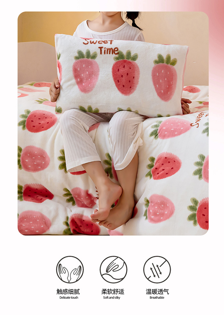 艾佳宝贝 2024新款牛奶豆豆绒儿童枕 枕头-草莓甜心