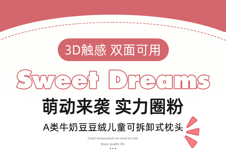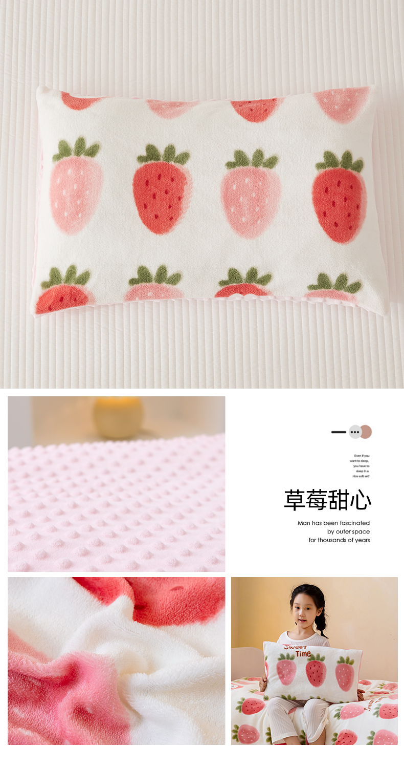 商品名称:艾佳宝贝 2024新款牛奶豆豆绒儿童枕 枕头-草莓甜心