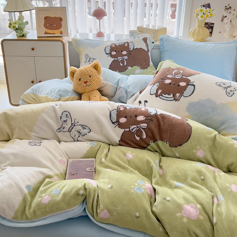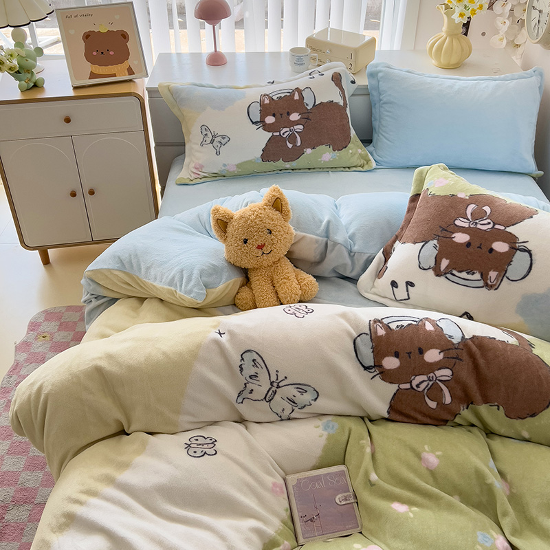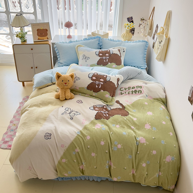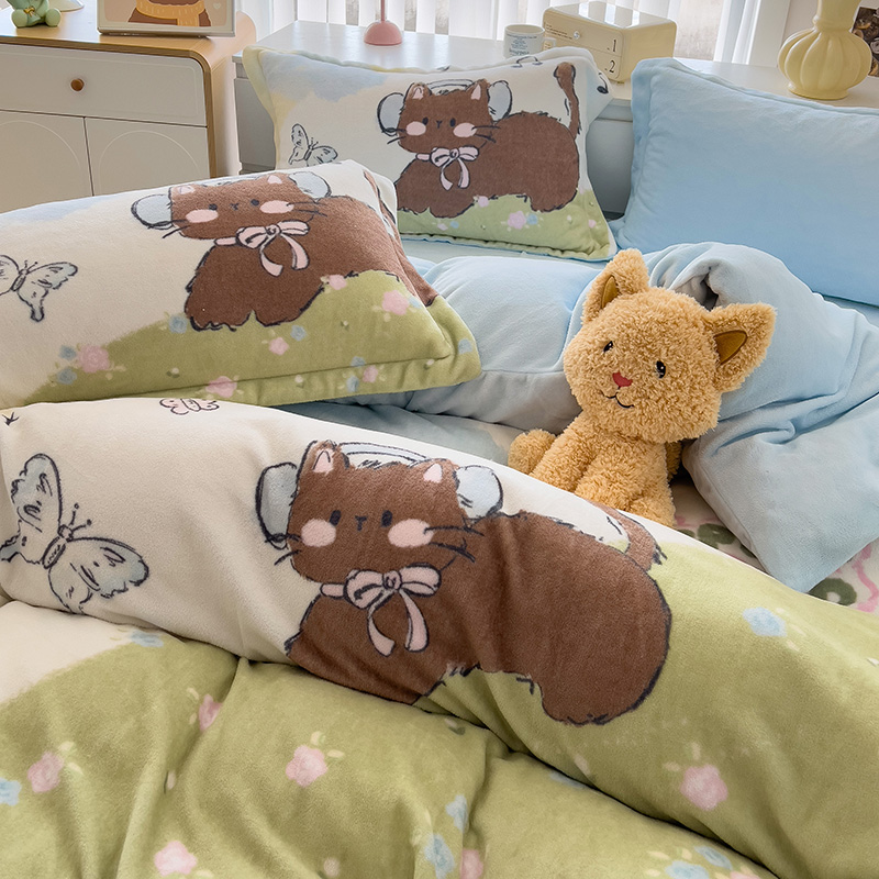 当前位置: 91家纺网 > 商品网购 > 床品套件 > 四件套 > 牛奶绒四件套 > 富瑞阁 2024新款数码大版牛奶绒保暖四件套床盖四件套六件套三件套单品 花园小猫