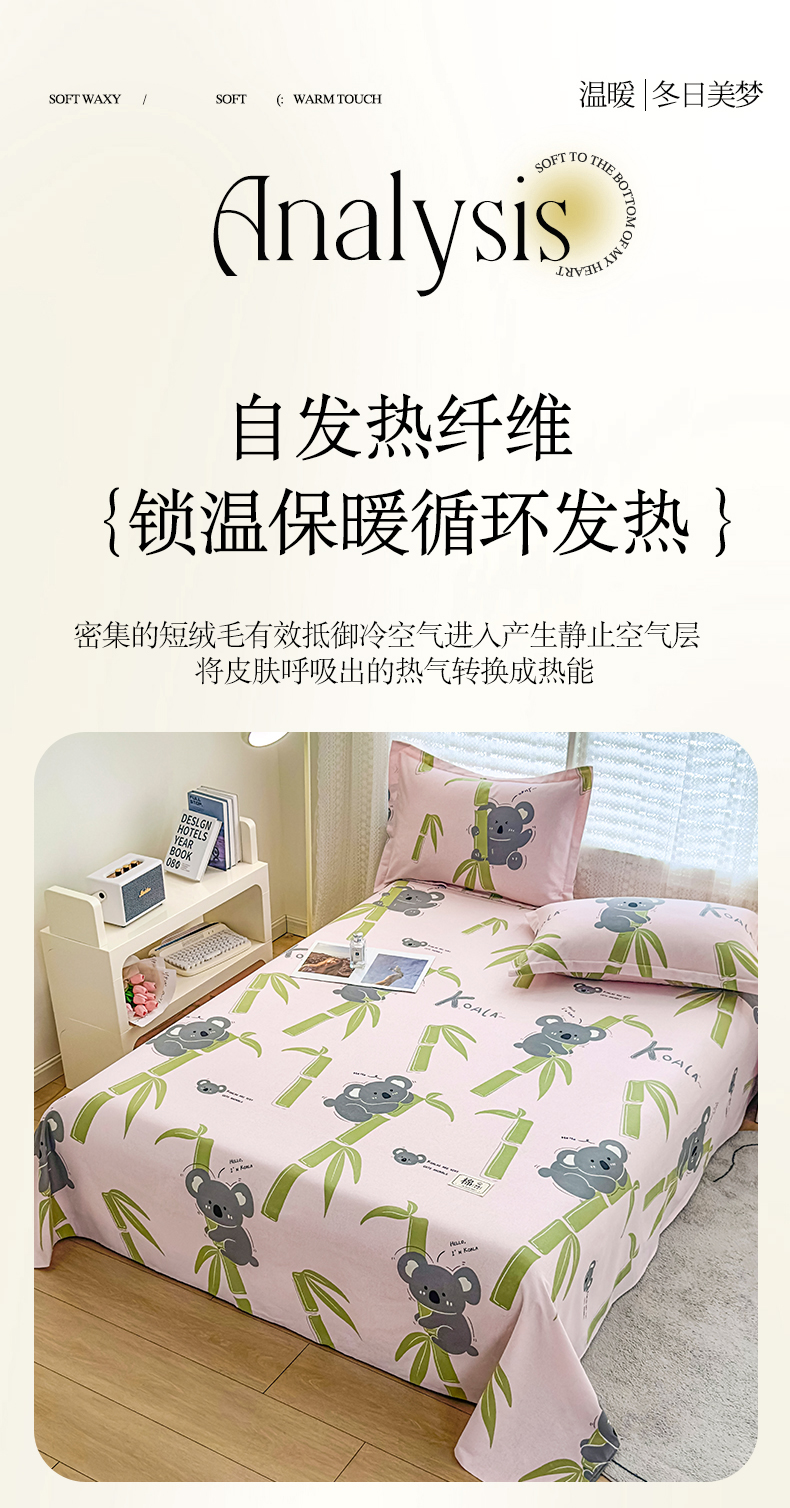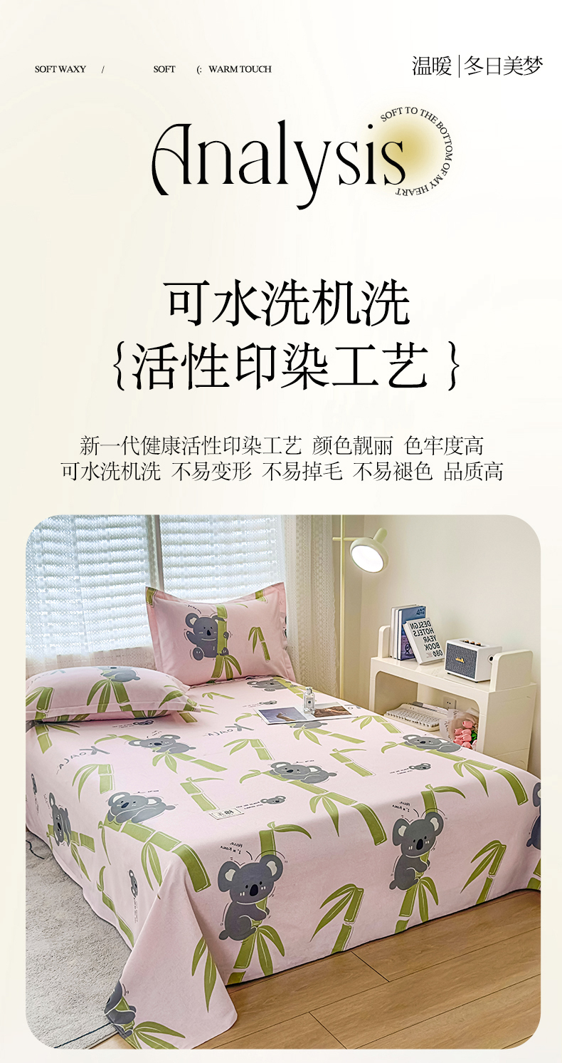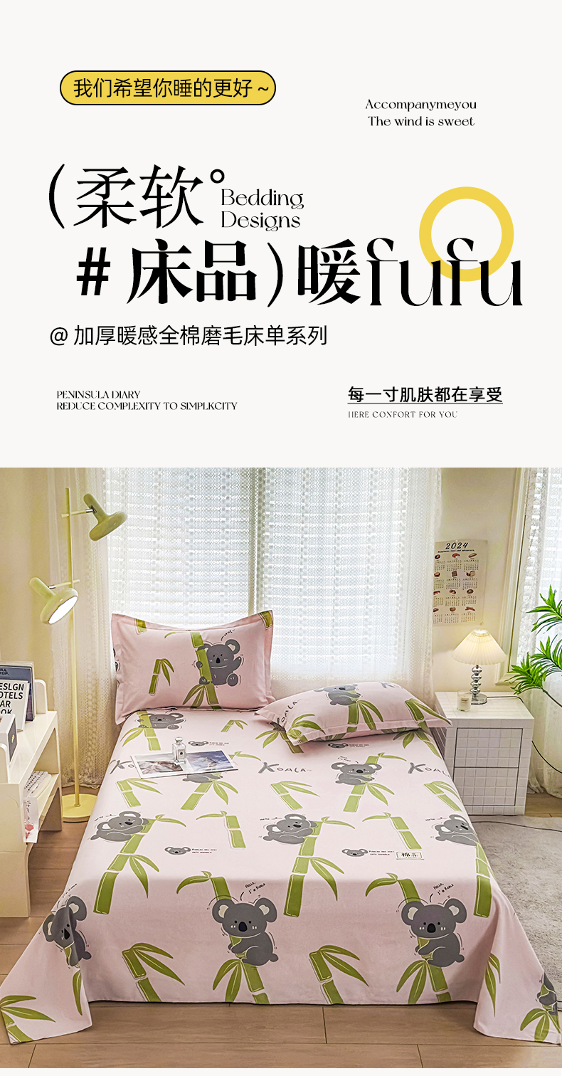 丝芙妮家居(原乐视家纺) 2024新款全棉磨毛多规格AB版单品套件系列(第二波)--单床单及三件套 考拉
