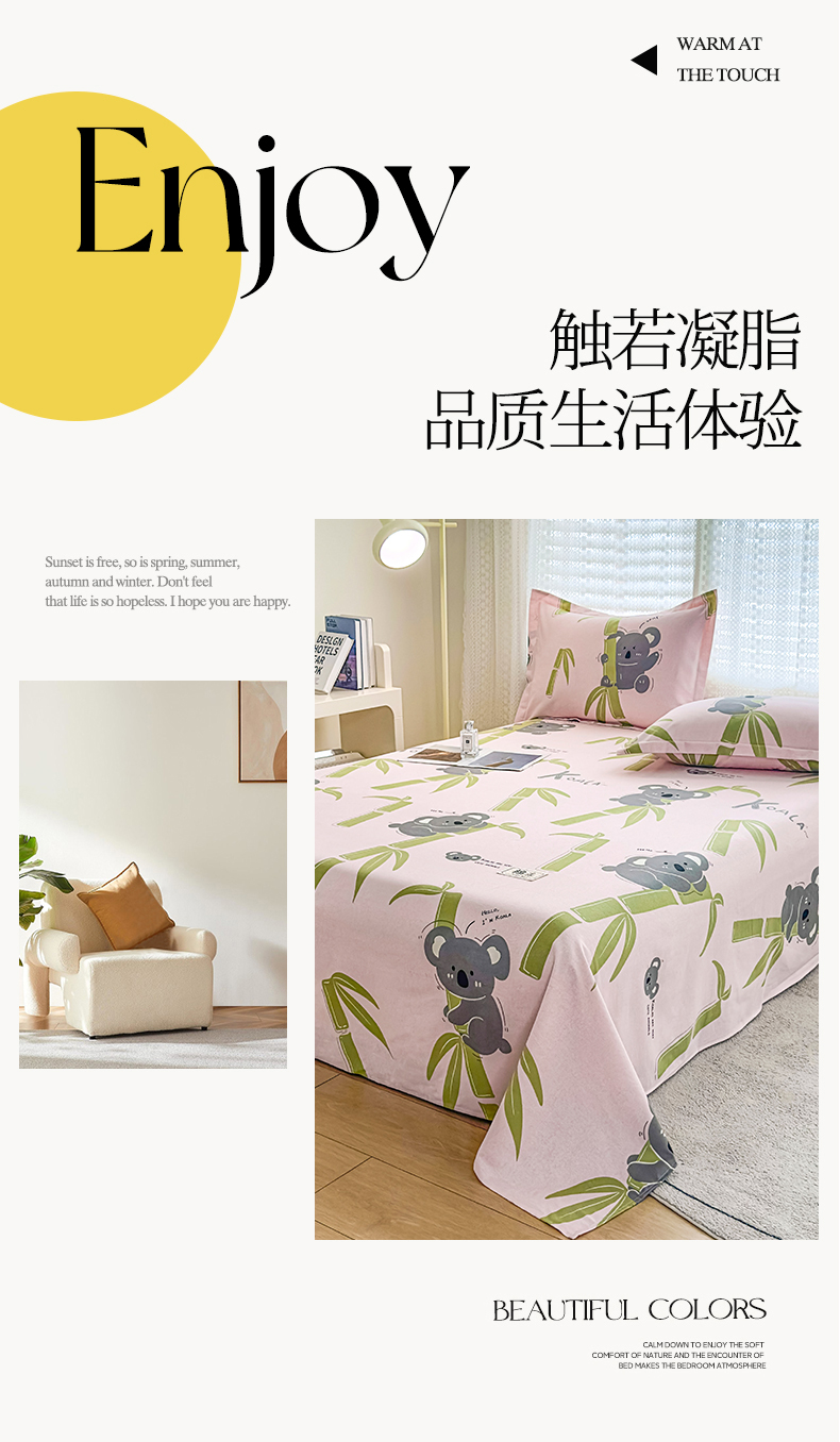 • 91家纺网 家纺一手货源 找家纺 丝芙妮家居(原乐视家纺) 2024新款全棉磨毛多规格AB版单品套件系列(第二波)--单床单及三件套 考拉
