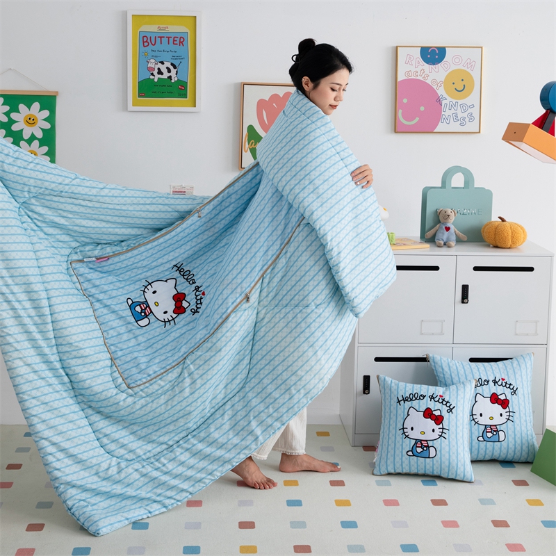 照世家纺 2024新款三丽鸥抱枕被(优惠卷后价格不能低于56/75/88) 凯蒂猫-蓝