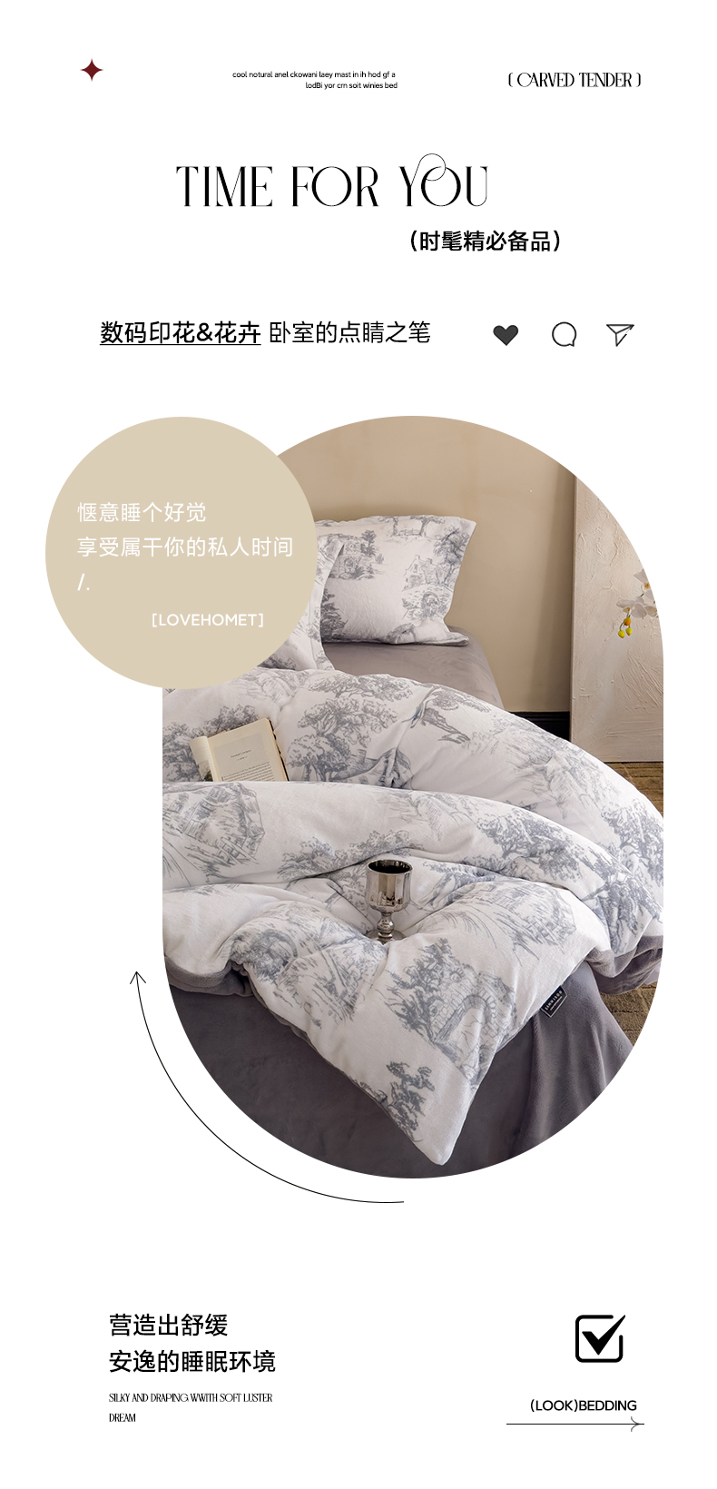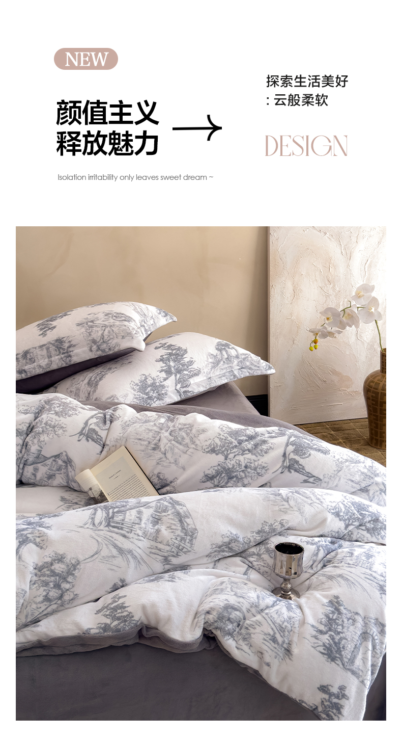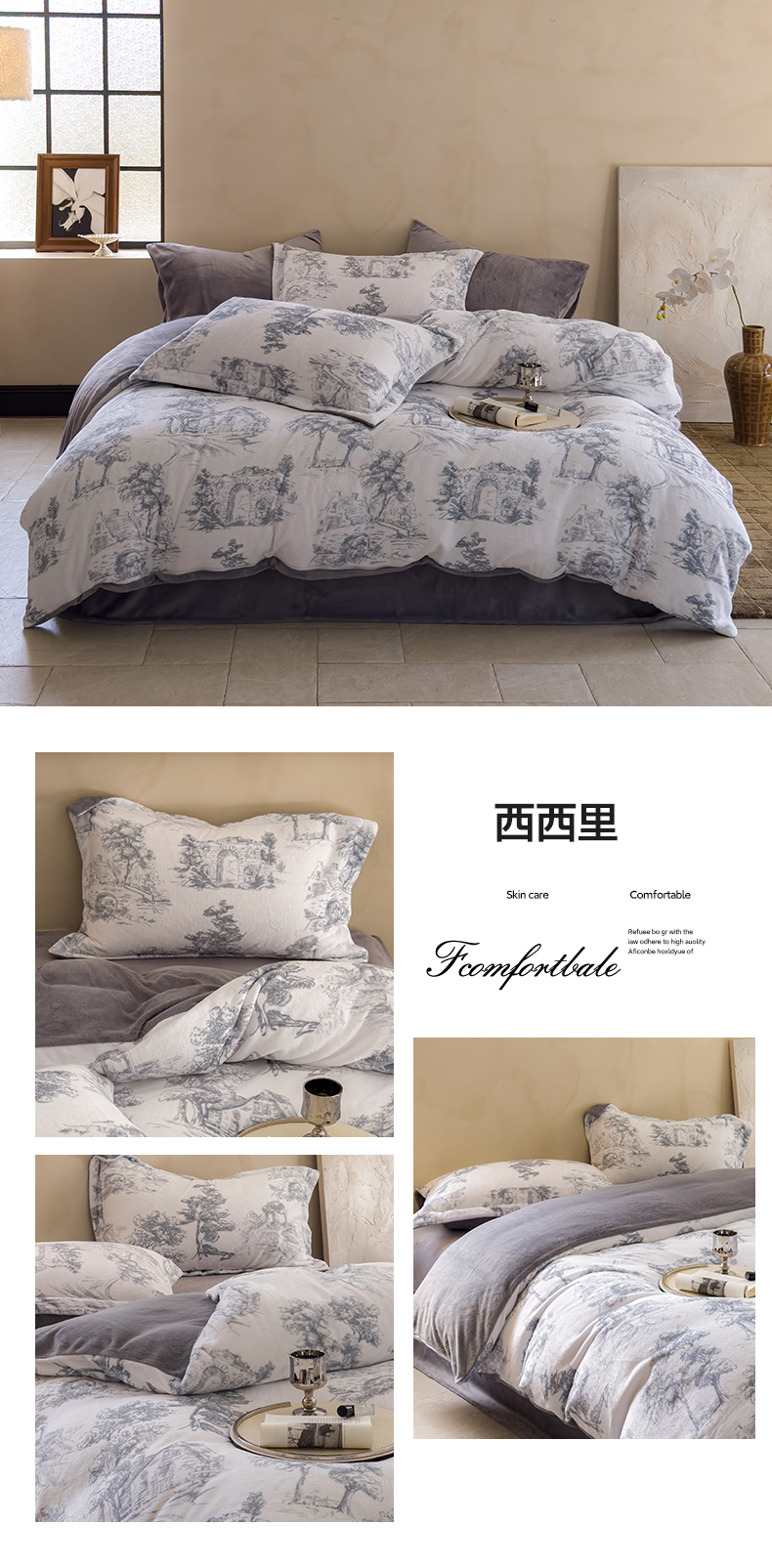 商品名称:三味舒屋 2024新款小清新数码印花牛奶绒四件套-花艺系列 西西里
