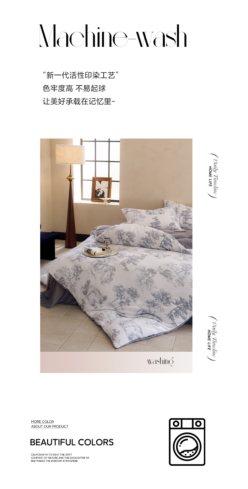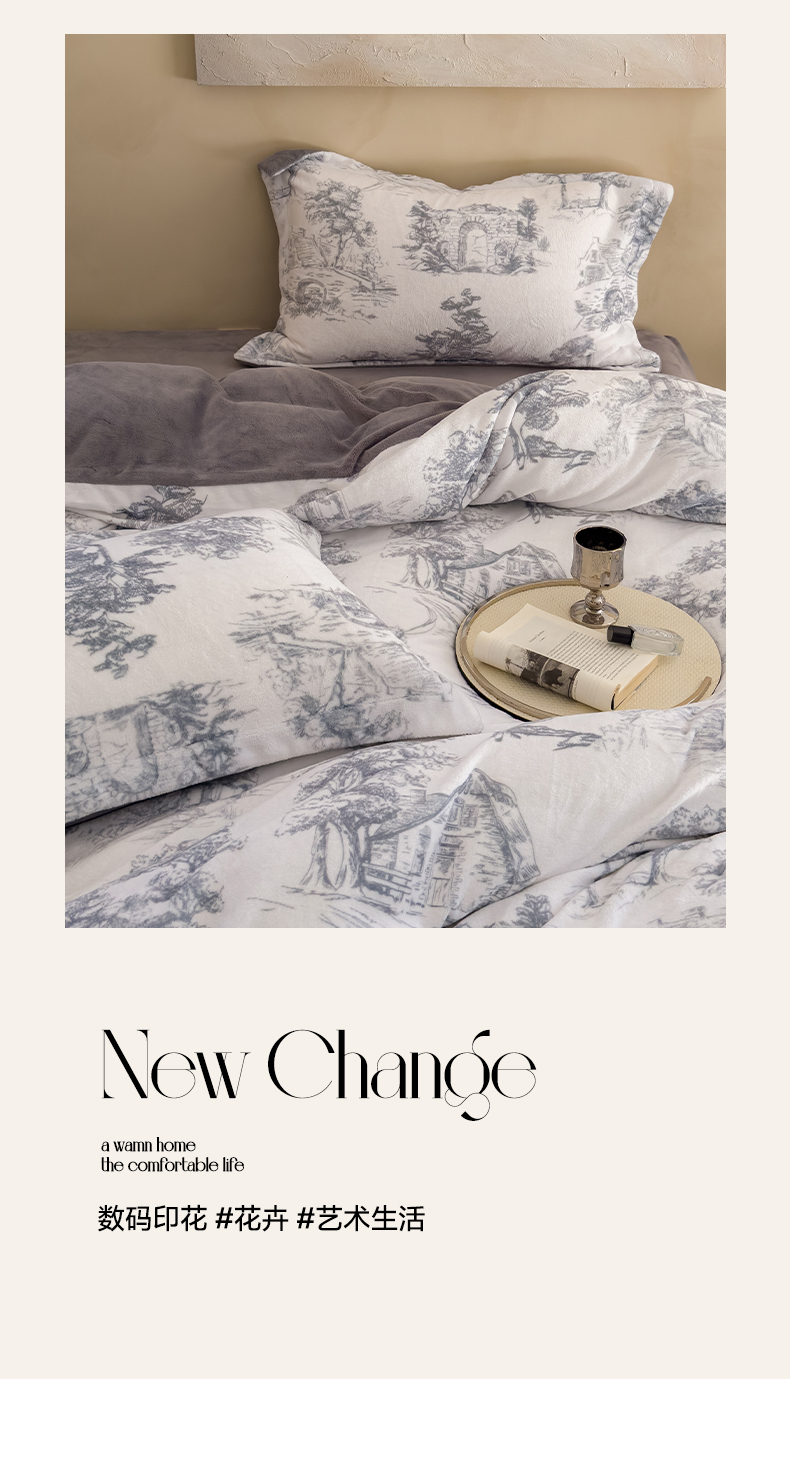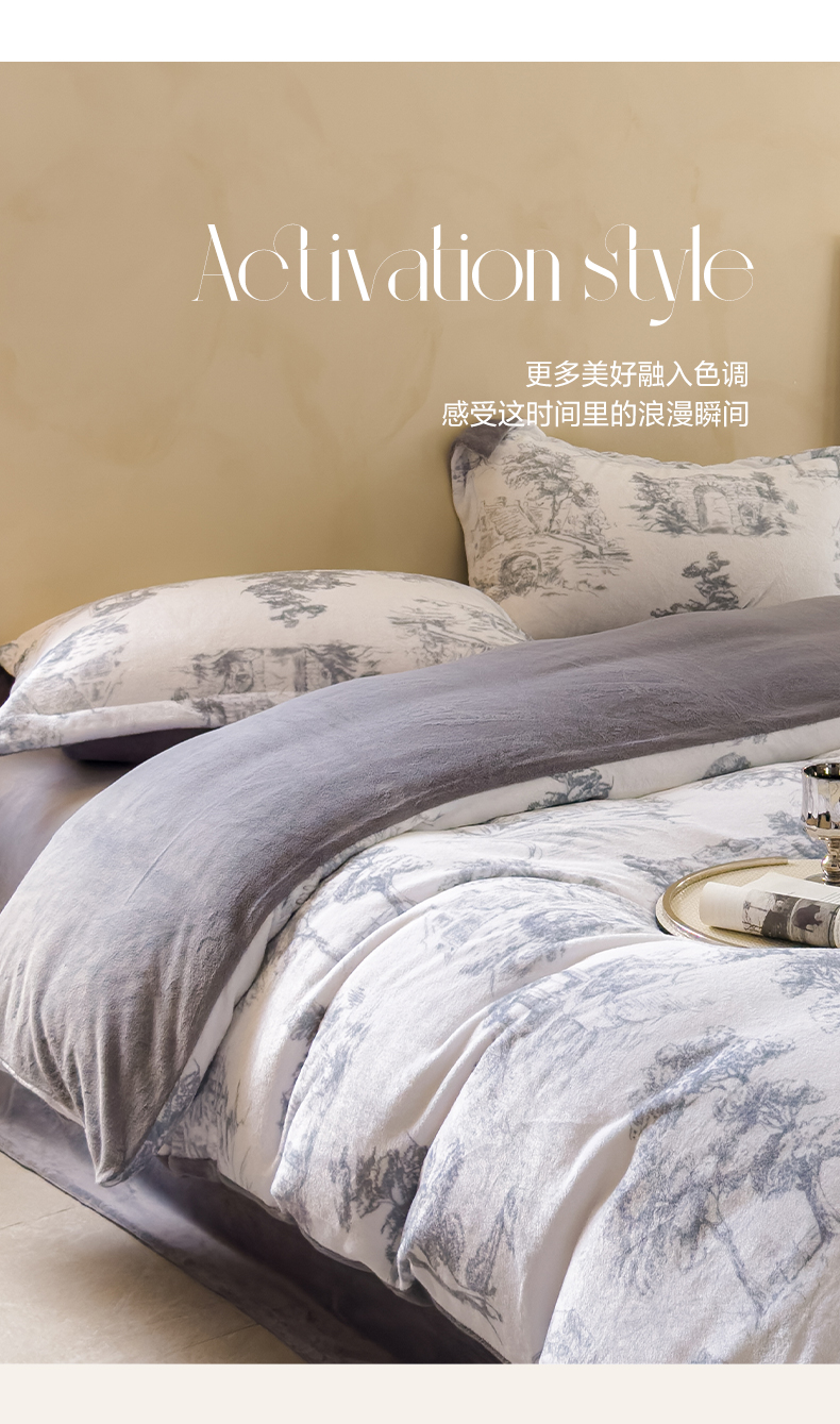 商品名称:三味舒屋 2024新款小清新数码印花牛奶绒四件套-花艺系列 西西里