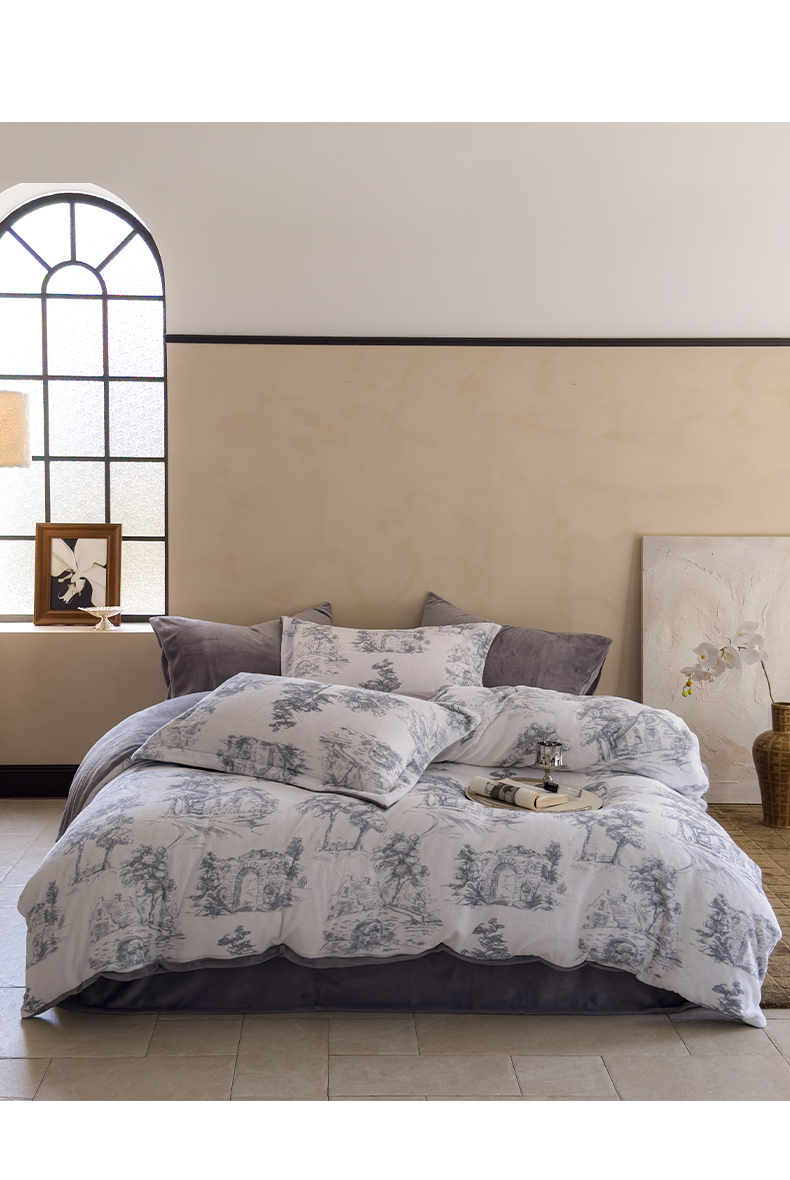 三味舒屋 2024新款小清新数码印花牛奶绒四件套-花艺系列 西西里