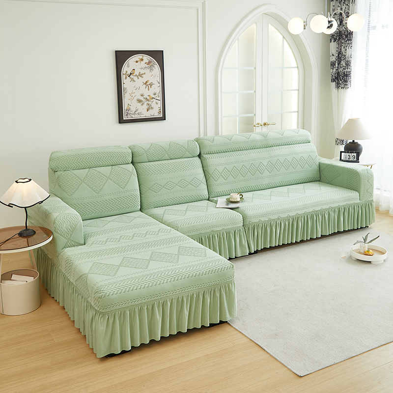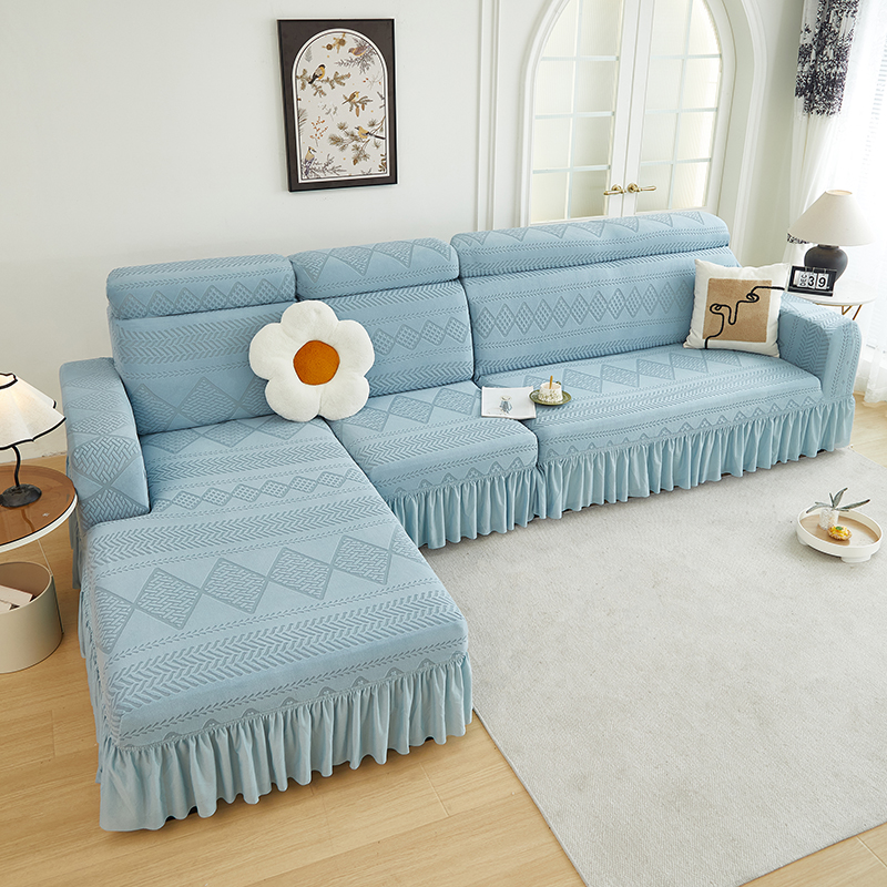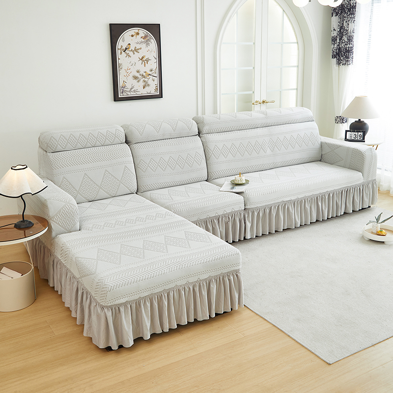 当前位置: 91家纺网 > 商品网购 > 居家布艺 > 坐垫/椅垫/沙发垫 > 沙发垫 > 丝绮鹿 2024新款雕花绒菲亚沙发套裙边款(贵妃图) 浅灰