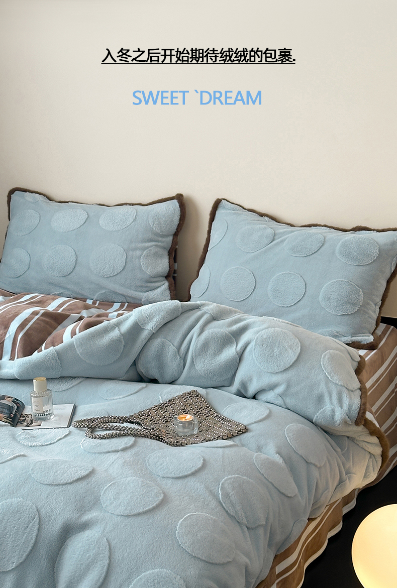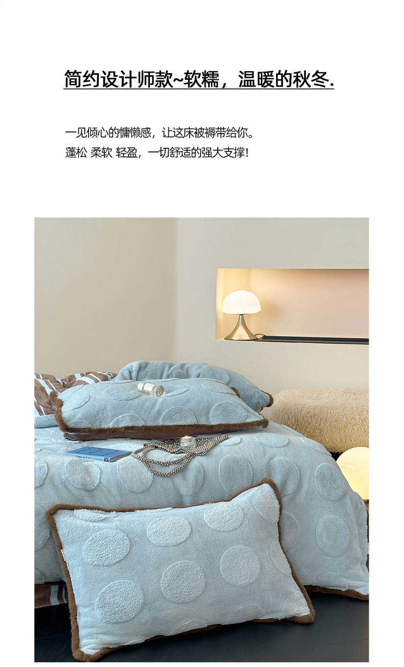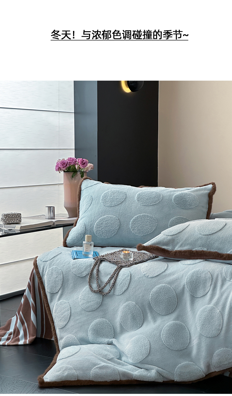 (总)桔子家纺 2025秋冬新款羊毛绒mi兔系列四件套,波点mi兔,复古红波点,黄油mi兔,烤面包