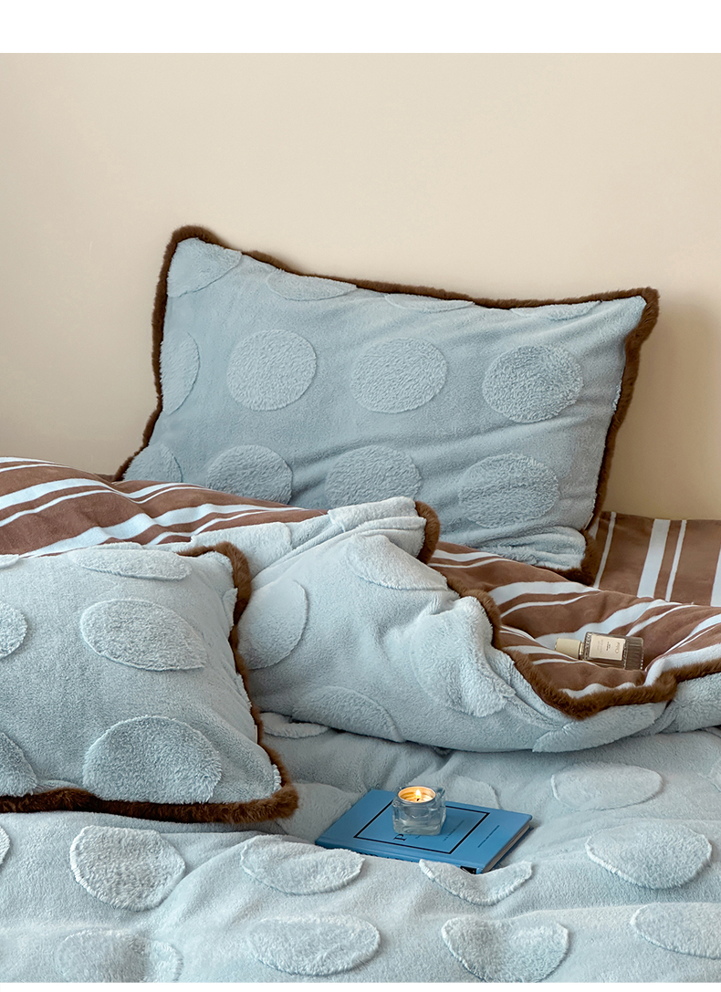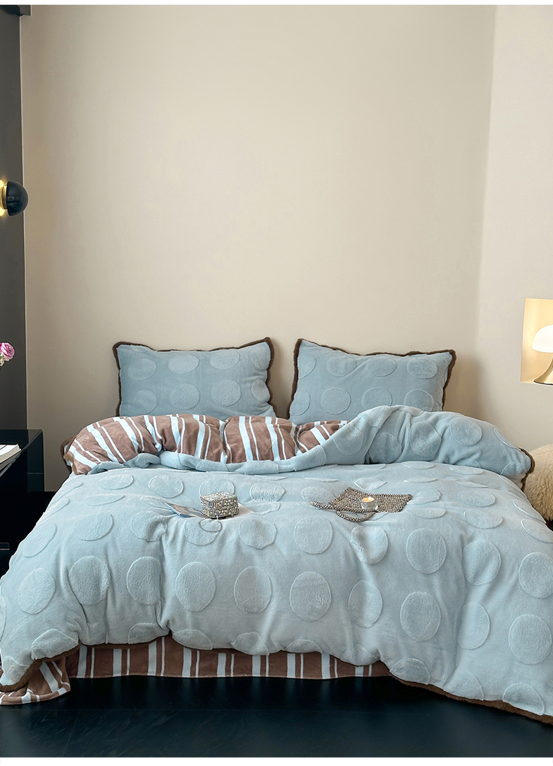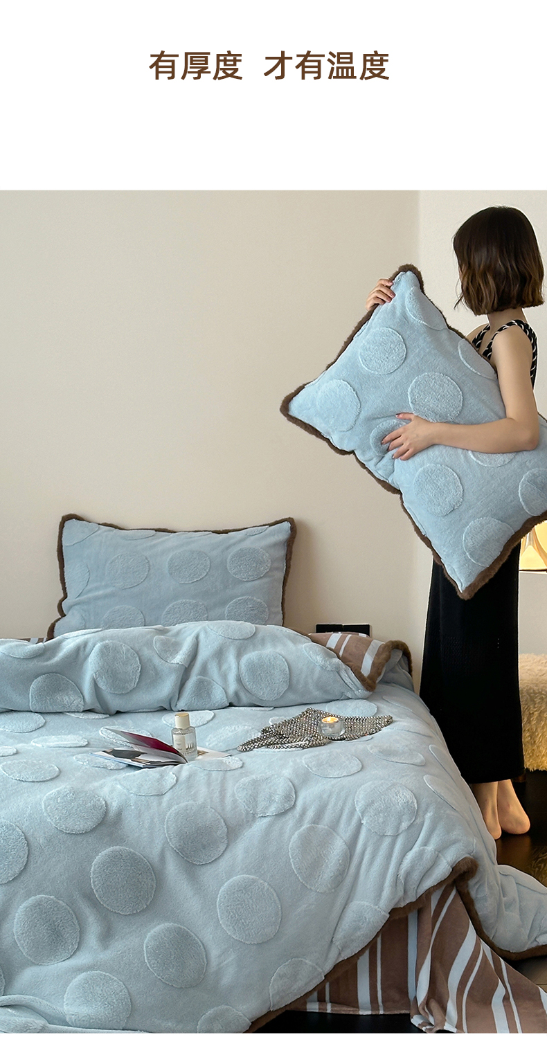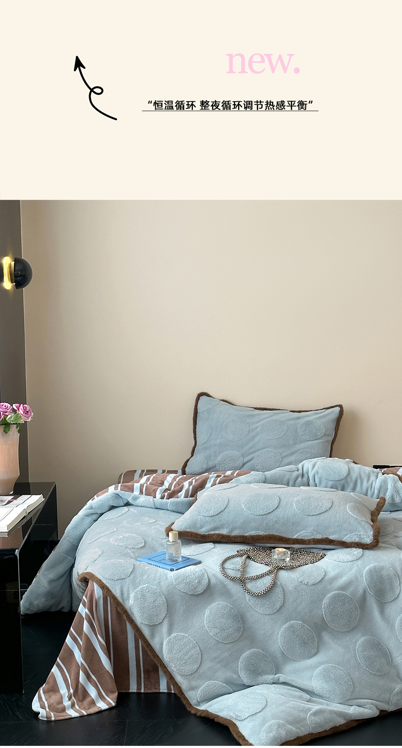 (总)桔子家纺 2025秋冬新款羊毛绒mi兔系列四件套,波点mi兔,复古红波点,黄油mi兔,烤面包