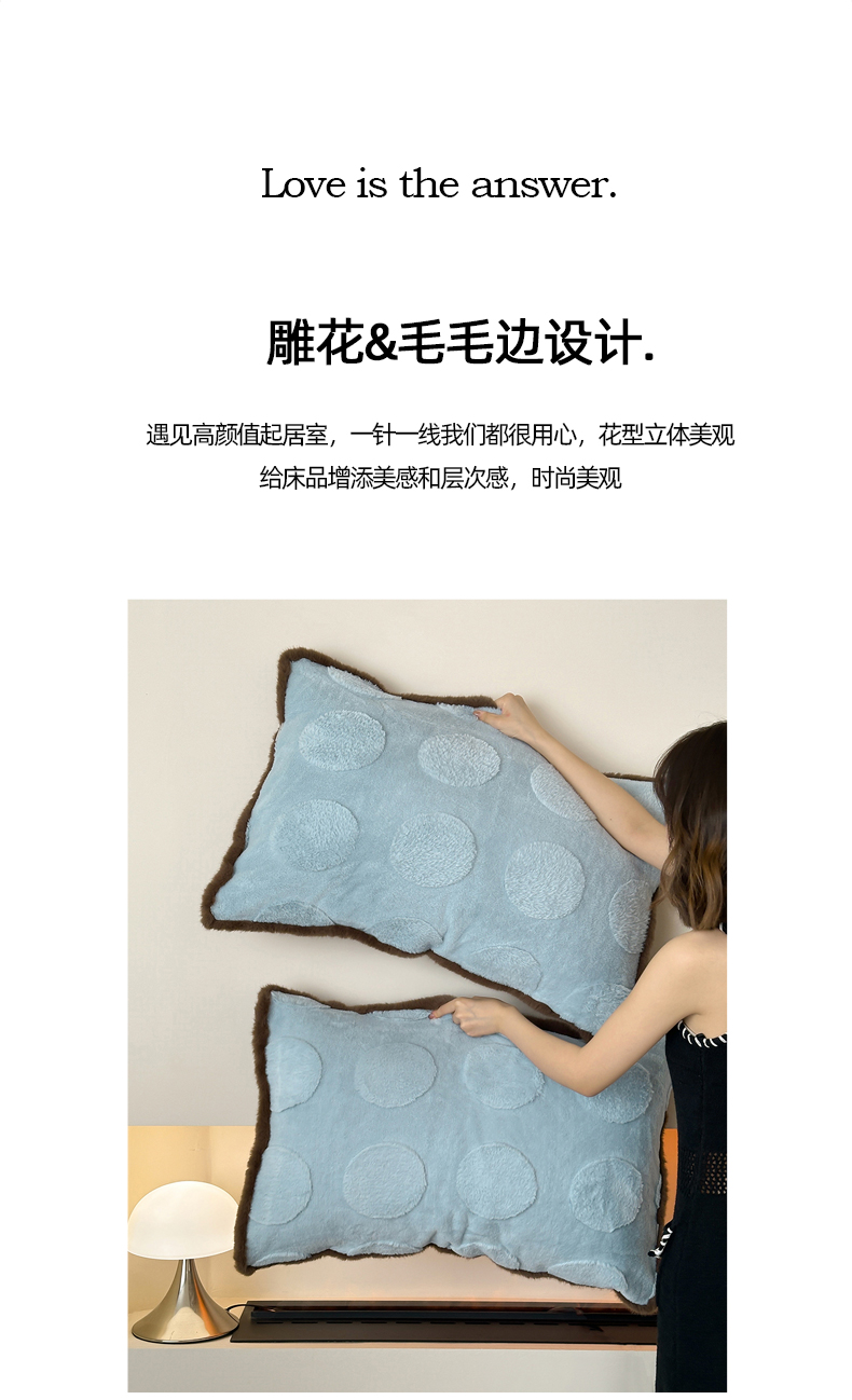 桔子家纺 2024新款兔兔绒立体雕花蝴蝶结系列四件套 冰岛蓝