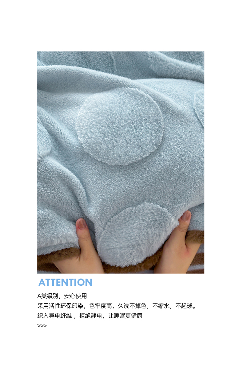 (总)桔子家纺 2025新款兔兔绒牛奶绒豹纹系列卡通绣花四件套,兔兔粉bao,兔兔黑bao,兔兔棕bao