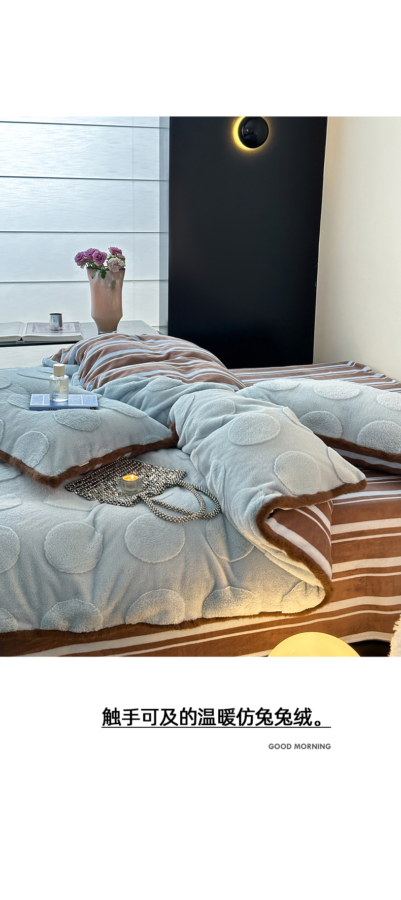 (总)桔子家纺 2025秋冬新款兔兔绒美式复古系列四件套,coco可可(四件套),查理(四件套),吉米(四件套)