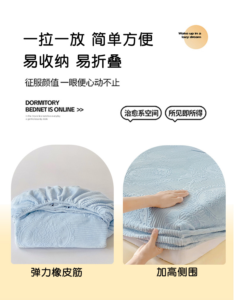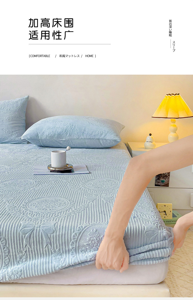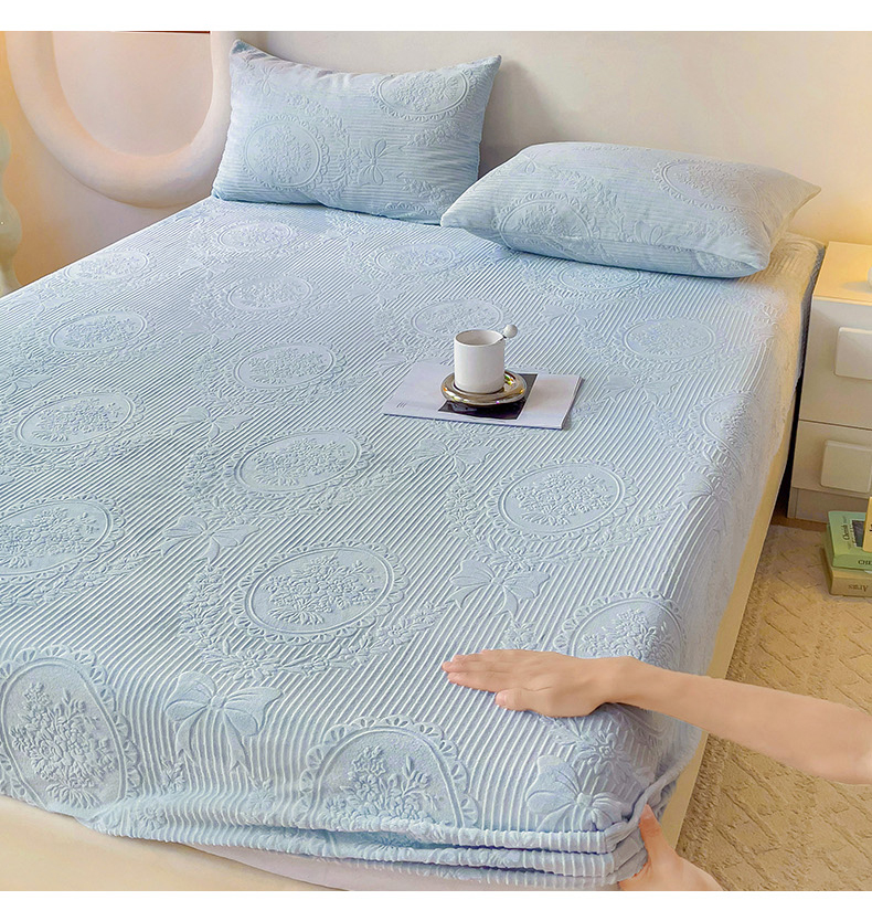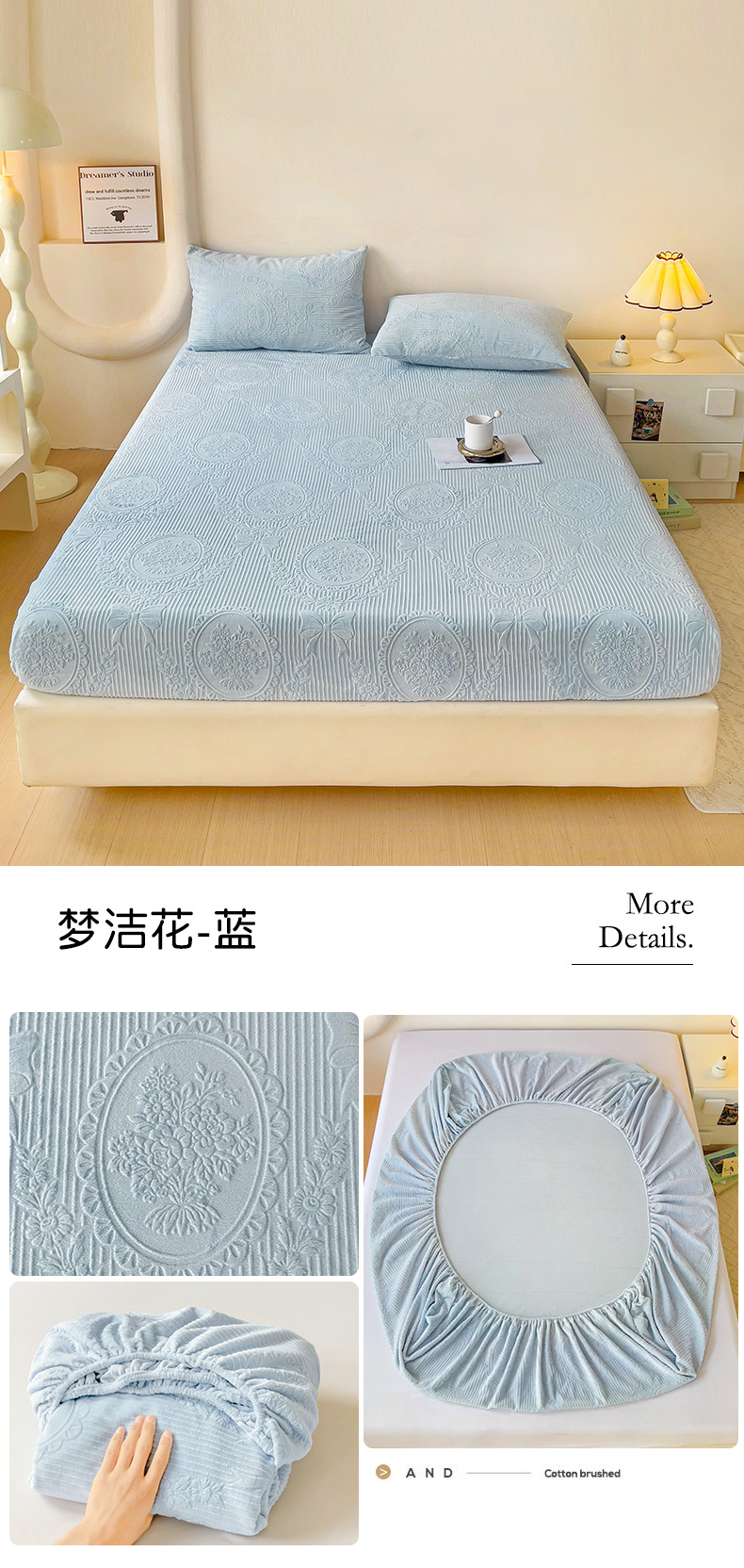 漫时光 2025新款牛奶绒烂花床笠 梦洁花-蓝