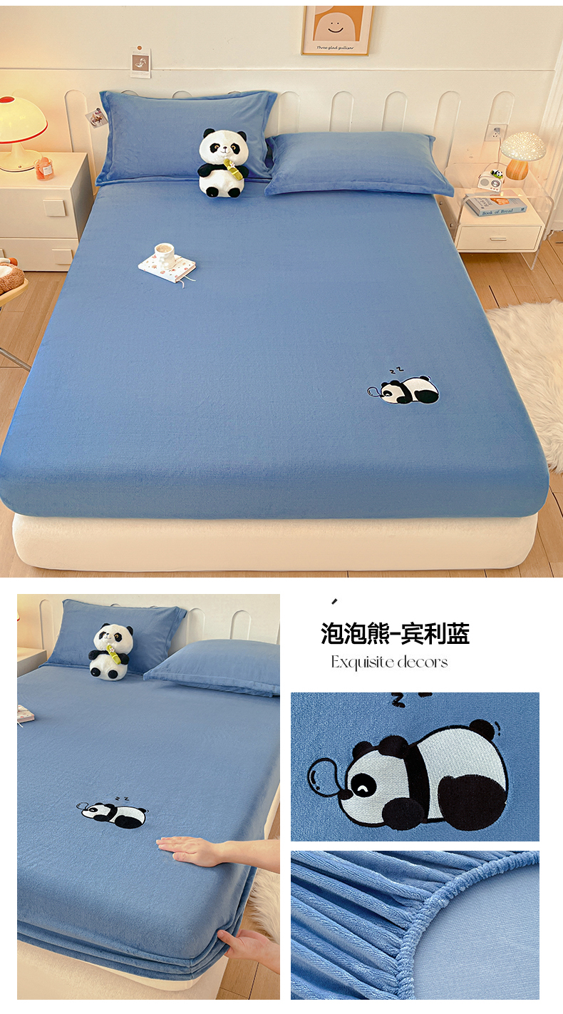 商品名称:梵克保罗 2024新款秋冬新款保暖加厚纯色牛奶绒泡泡熊刺绣单品单床笠 泡泡熊-淡蓝