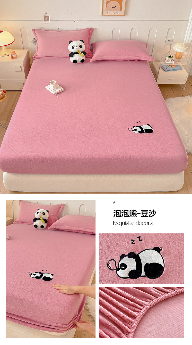 梵克保罗 2024新款秋冬新款保暖加厚纯色牛奶绒泡泡熊刺绣单品单床笠 泡泡熊-淡蓝