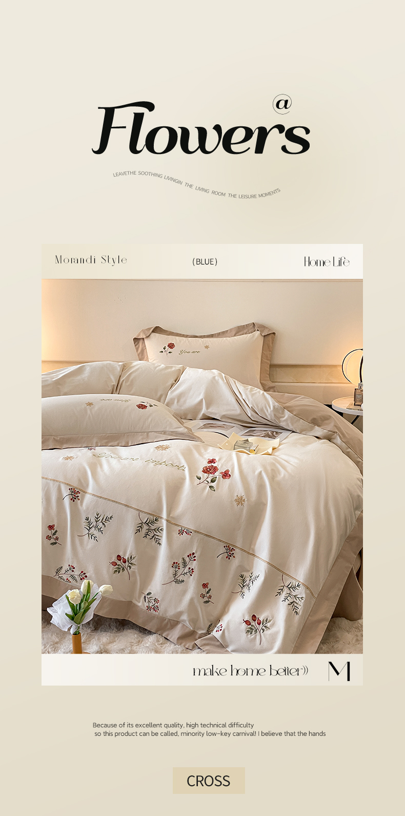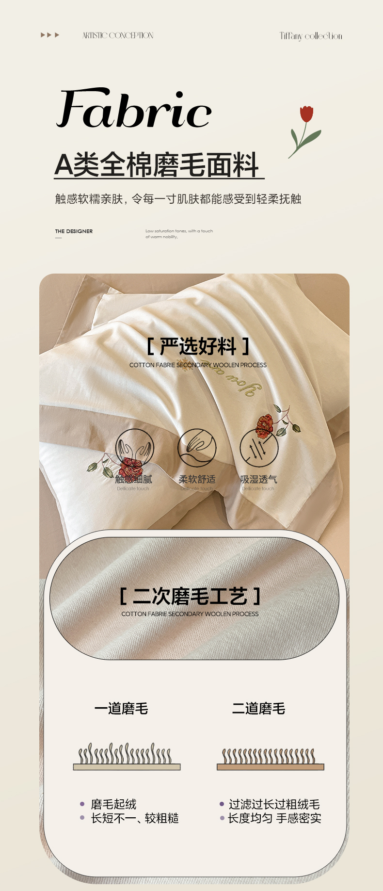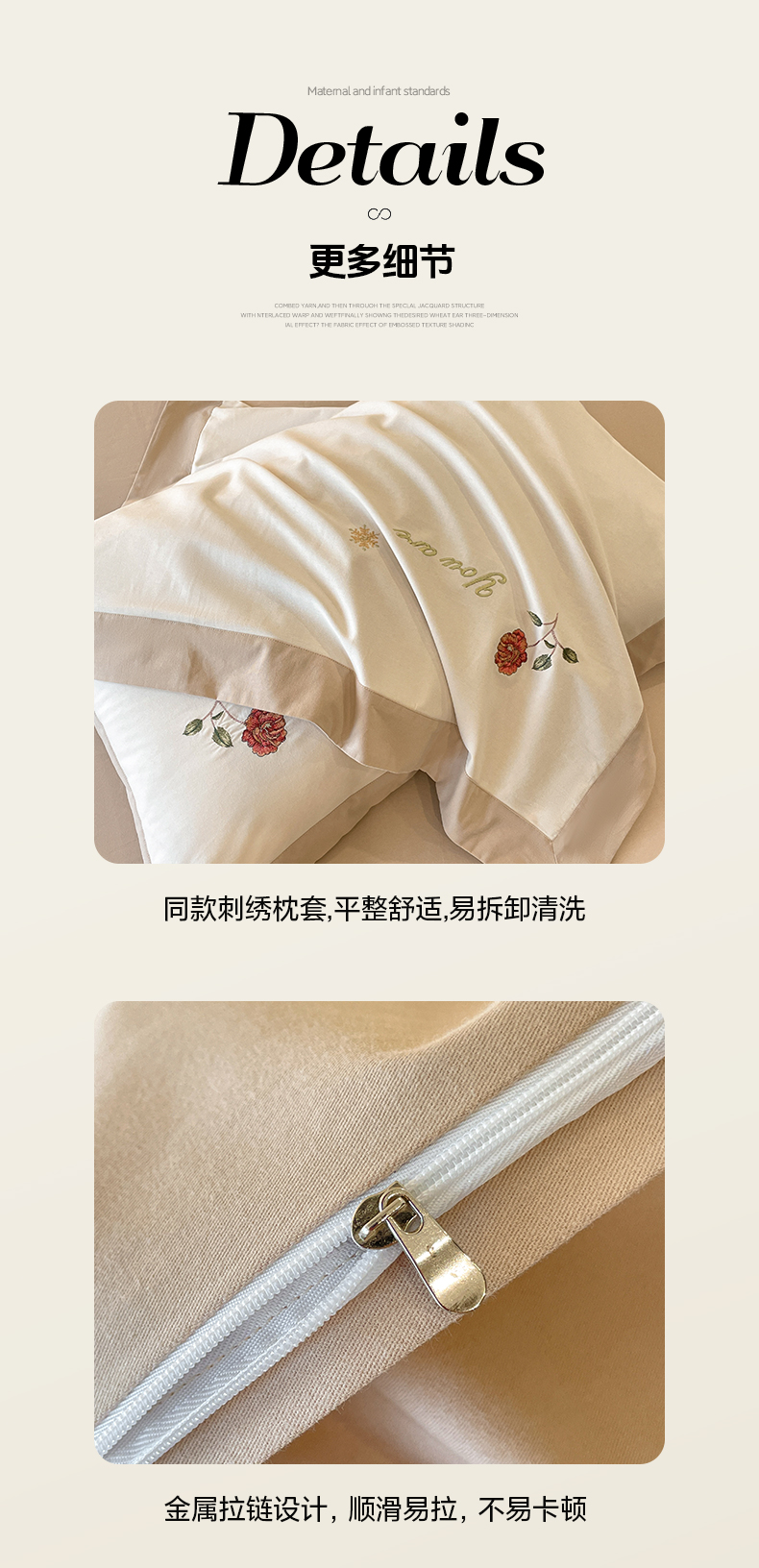 商品名称:遇见家居生活馆 2024新款A类全棉磨毛刺绣四件套-丽莎 丽莎-杏驼色