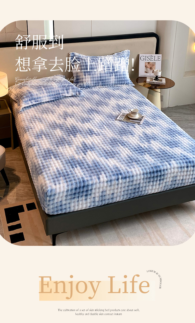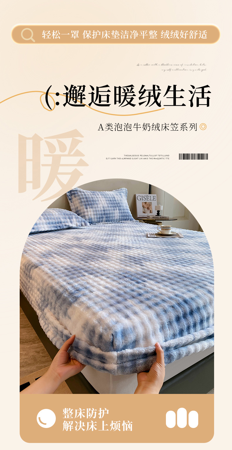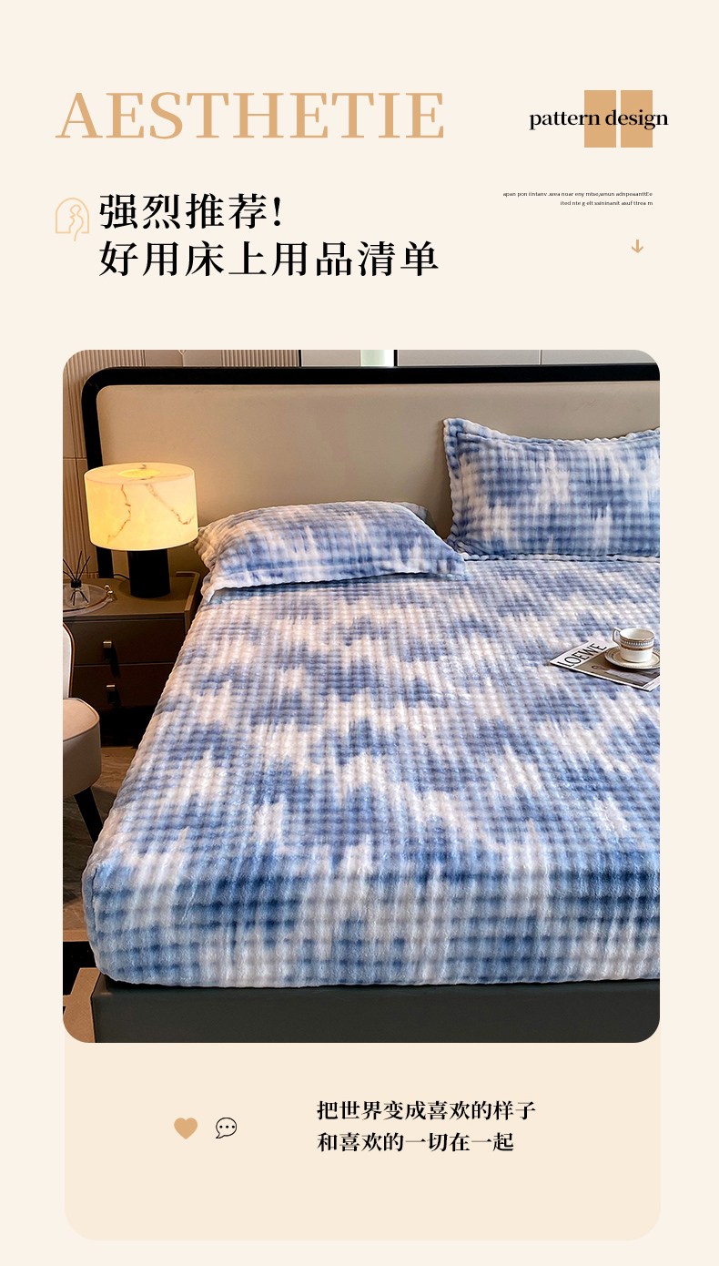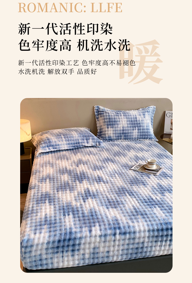 • 91家纺网 家纺一手货源 找家纺 雨彤家纺 2024新款泡泡牛奶绒床笠 油画兰