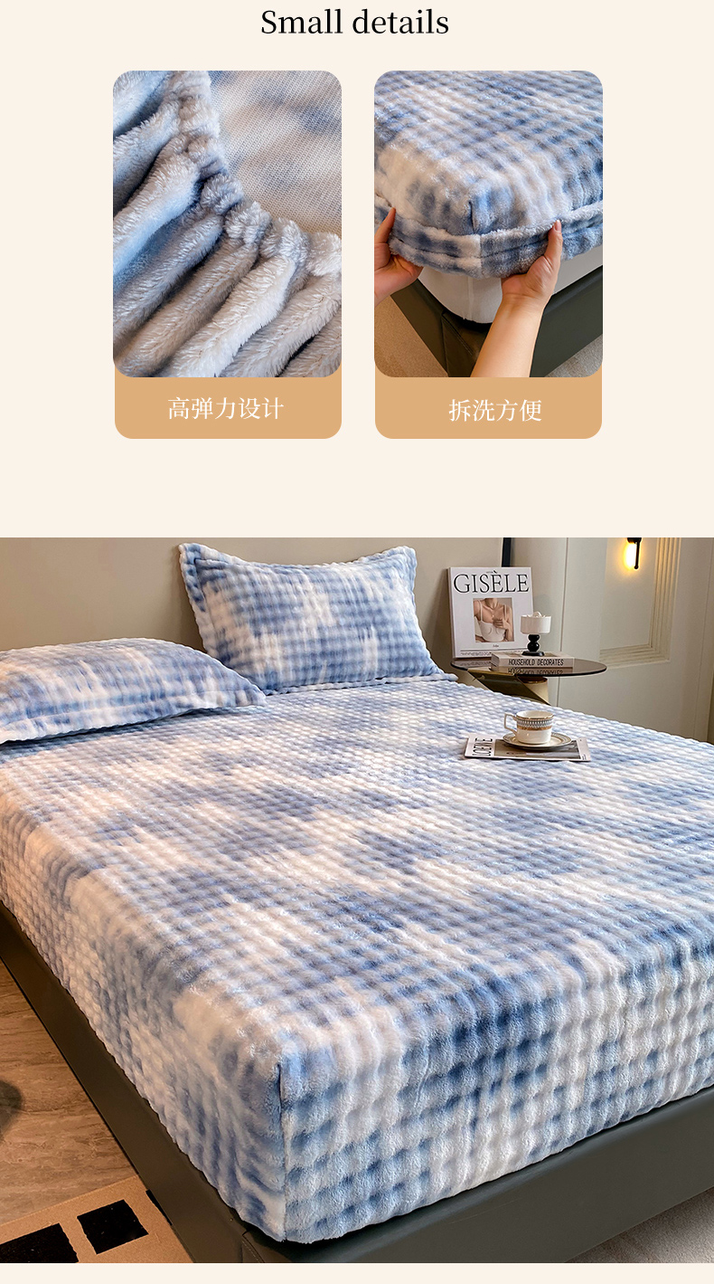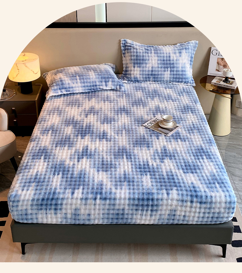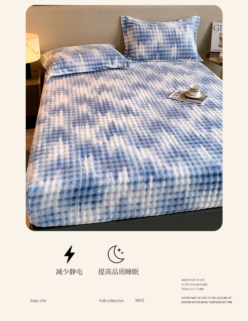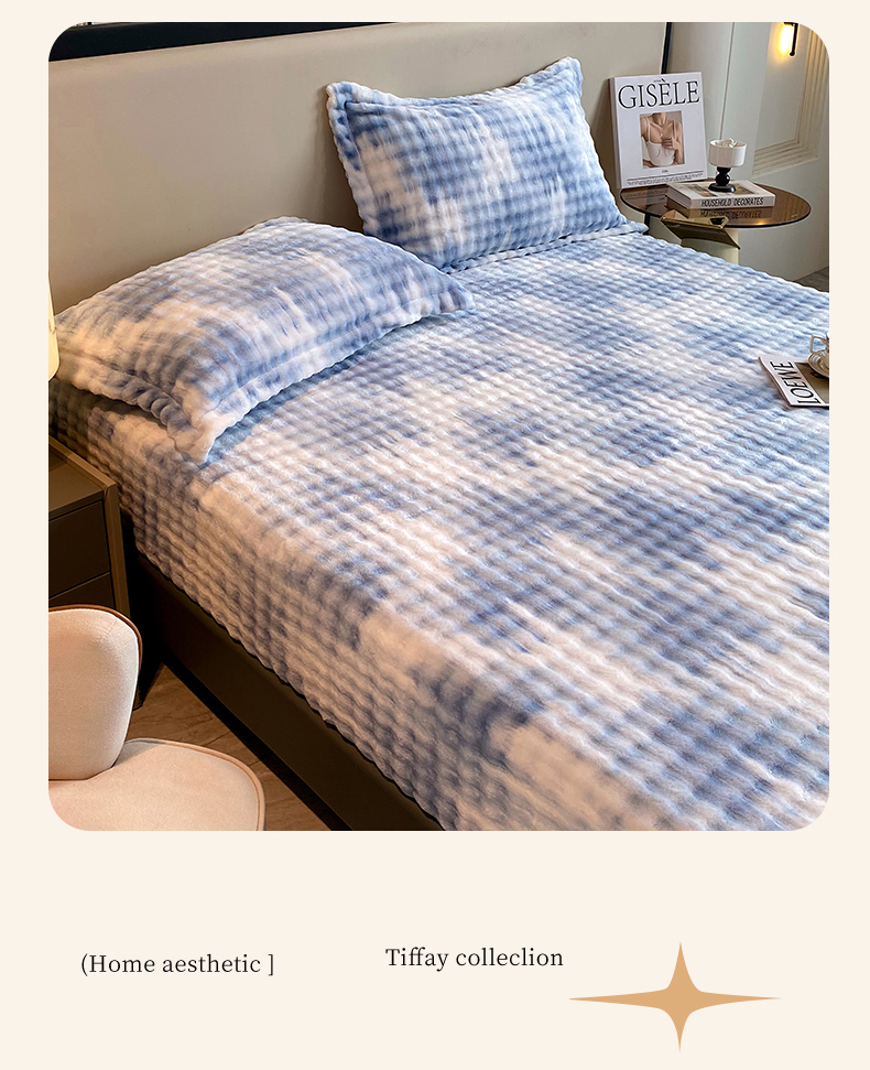 • 91家纺网 家纺一手货源 找家纺 雨彤家纺 2024新款泡泡牛奶绒床笠 油画兰