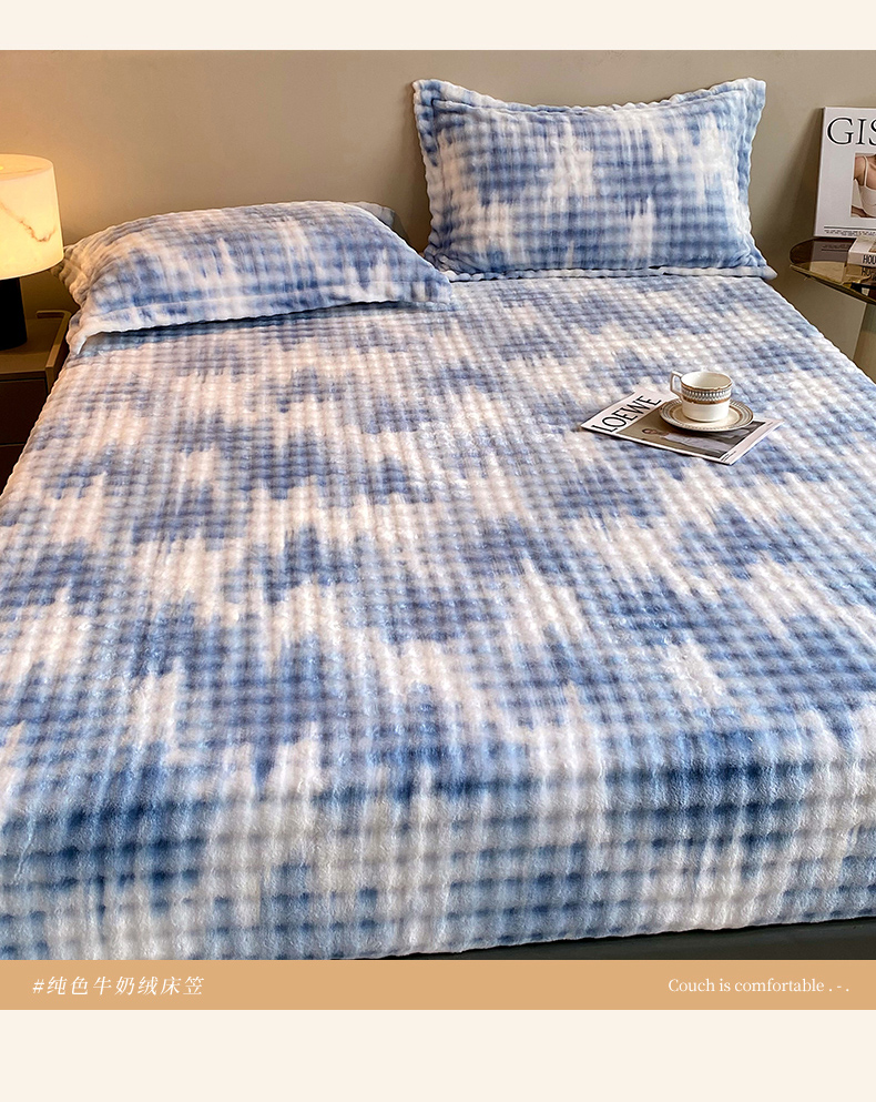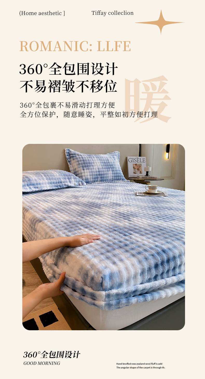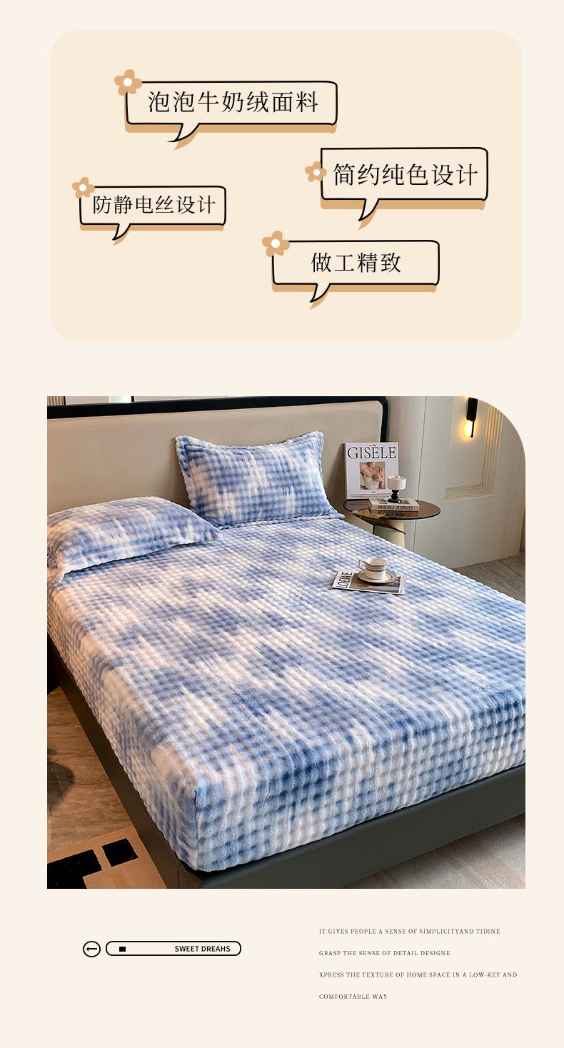 雨彤家纺 2024新款泡泡牛奶绒床笠 油画兰