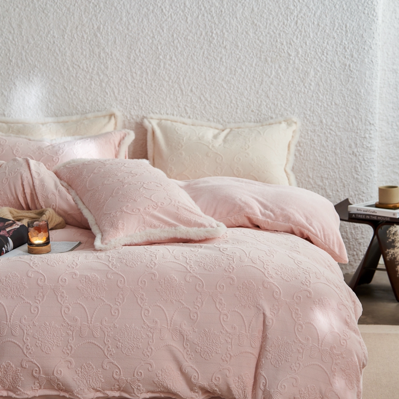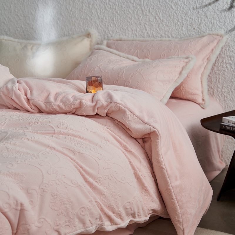 商品名称:时年家纺 2024新款240g全消光牛奶绒雕花系列四件套(充值会员优惠10元/套) 提花绒-粉柔