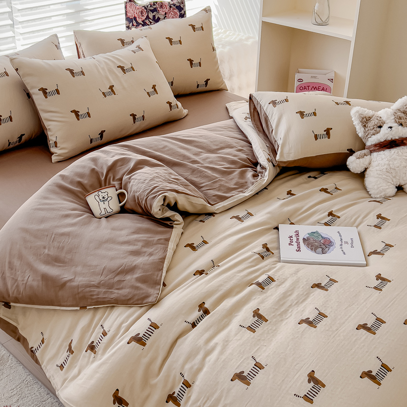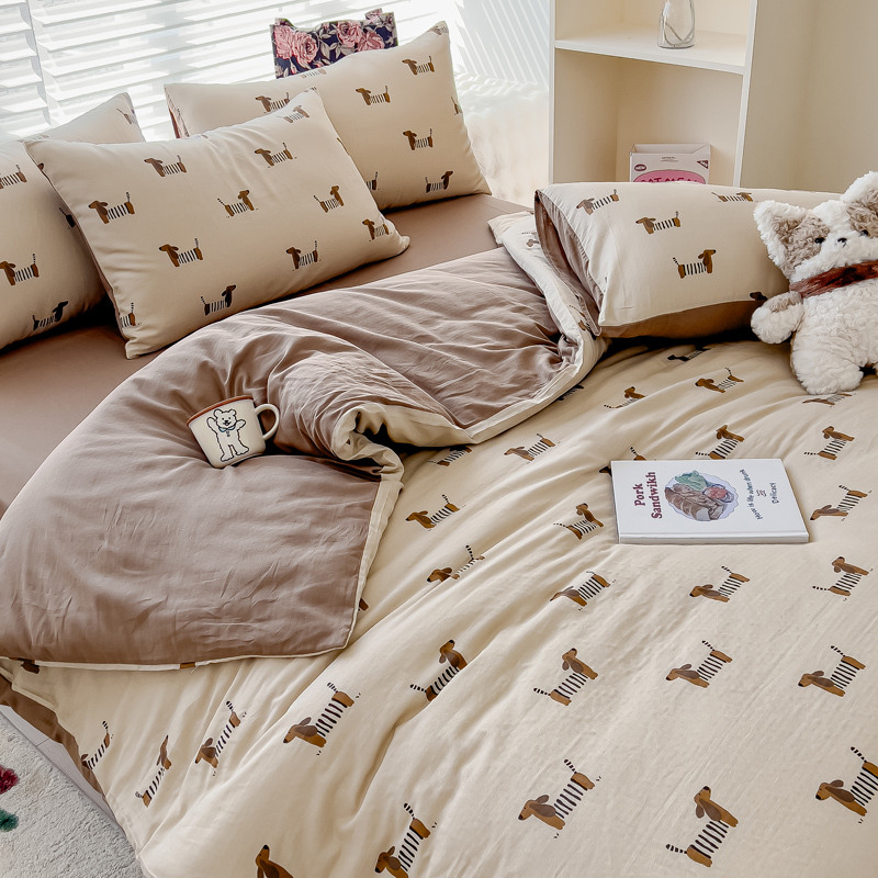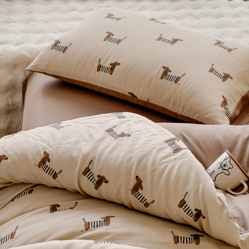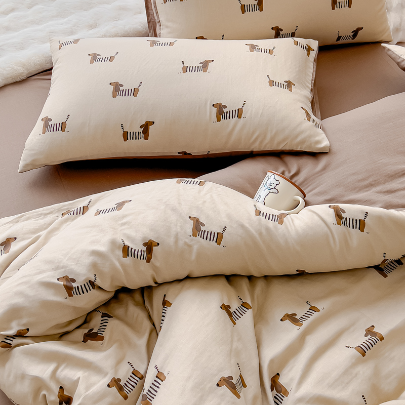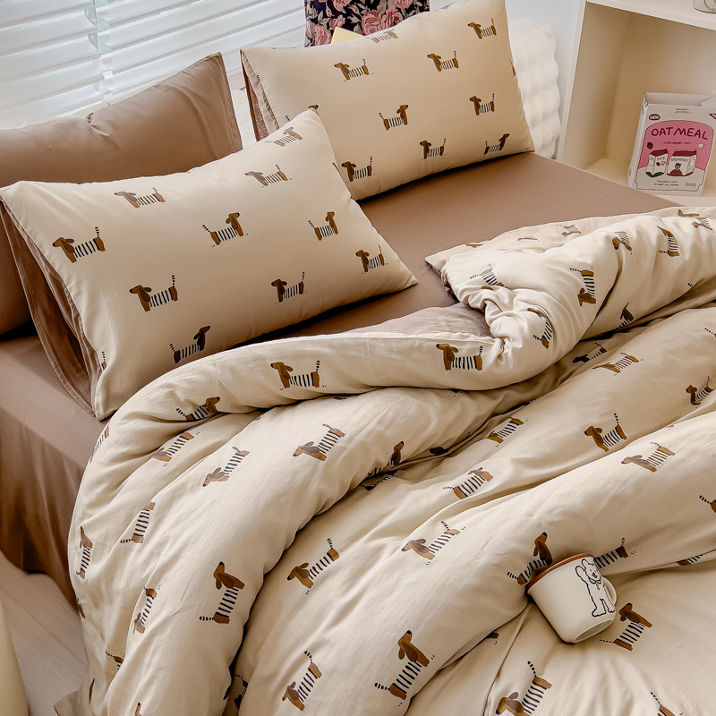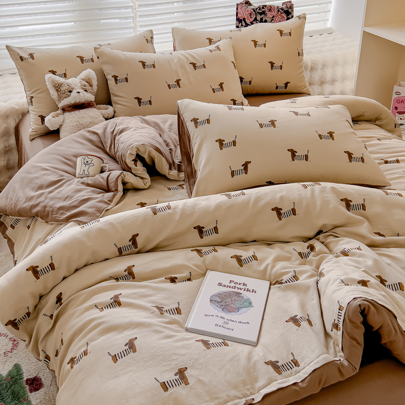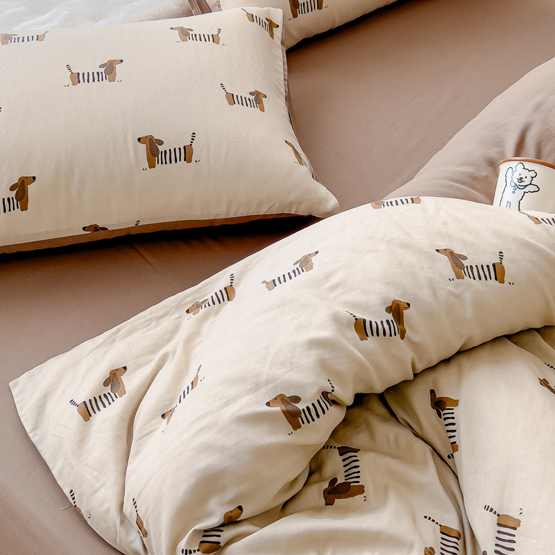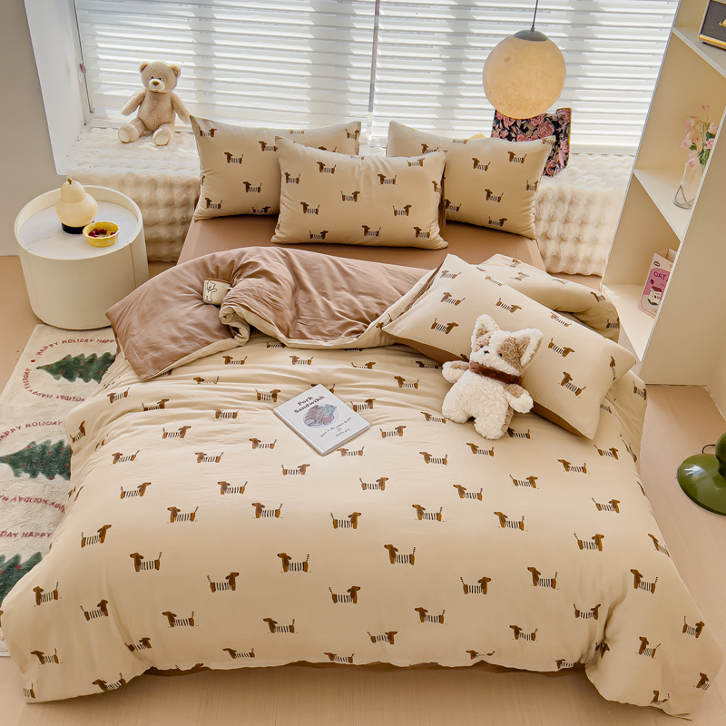 商品名称:金丝鸟家纺 2024秋冬新品全棉双层纱四件套 拉条狗
