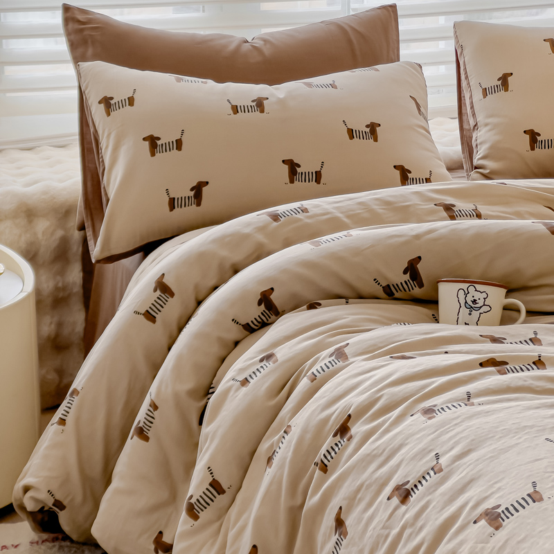 金丝鸟家纺 2024秋冬新品全棉双层纱四件套 拉条狗