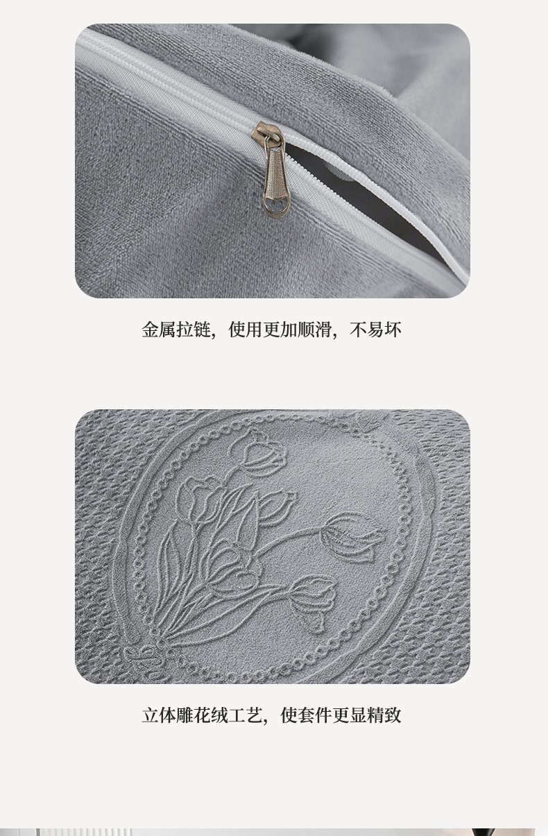 商品名称:畅畅家纺 2024新款11斤加厚冬季轻奢款230克全消光立体雕花牛奶绒夹棉床盖四件套 轻奢花语-深灰