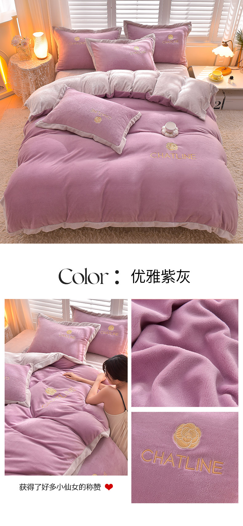当前位置: 91家纺网 > 商品网购 > 床品套件 > 四件套 > 牛奶绒四件套 > 简爱 2025新款牛奶绒纯色双拼拼角工艺款四件套-初暖 优雅紫灰