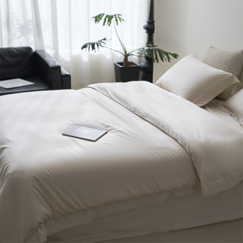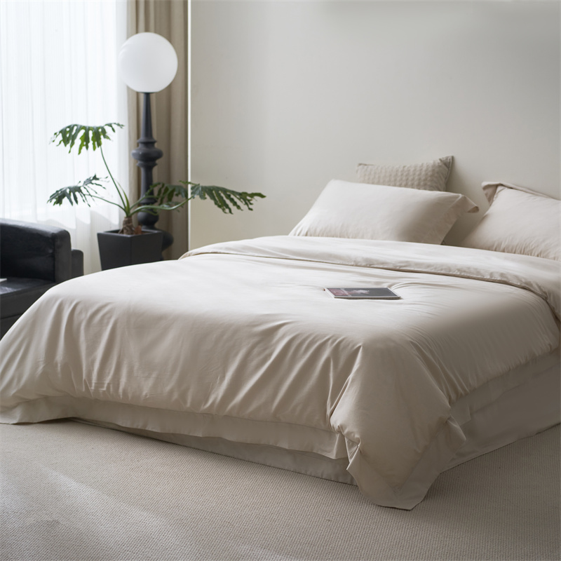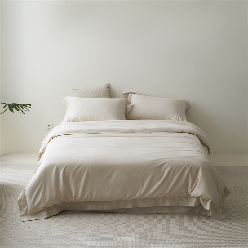 商品名称:阿那亚 2024四季款新品东帝兴绫罗缎(超细旦天丝+新疆长绒棉)轻磨毛纯色简约四件套(控价:498/518) 月白