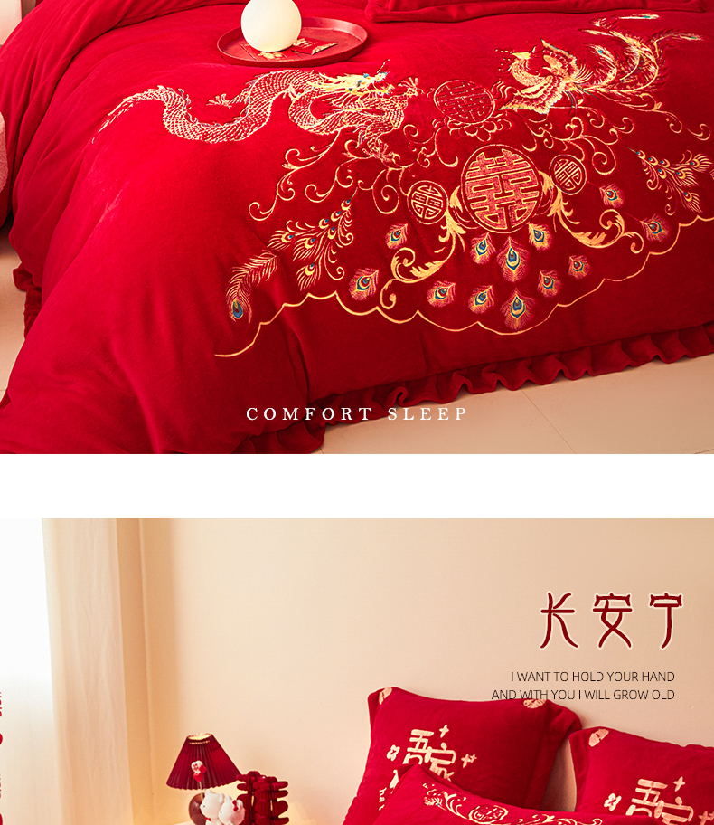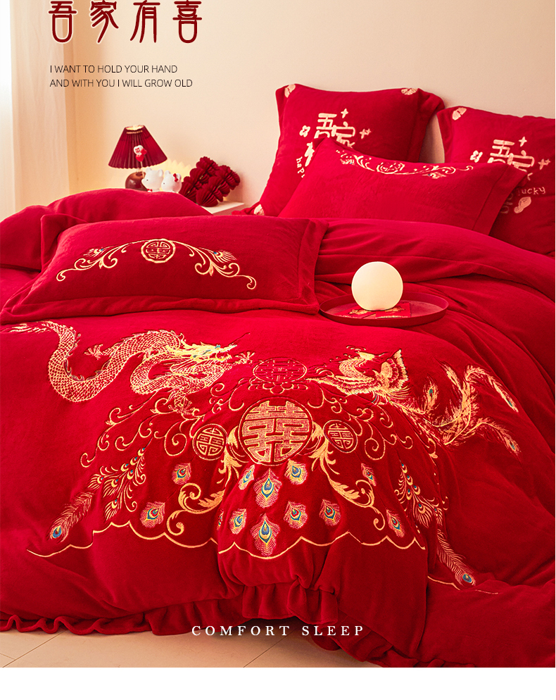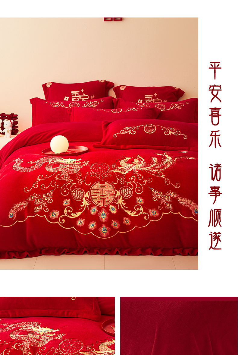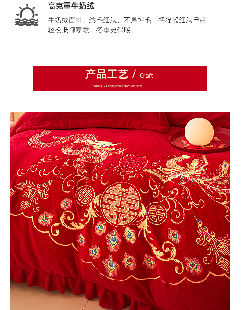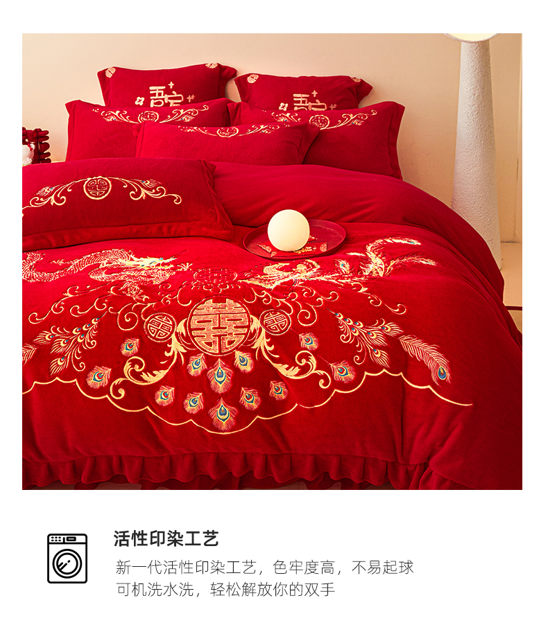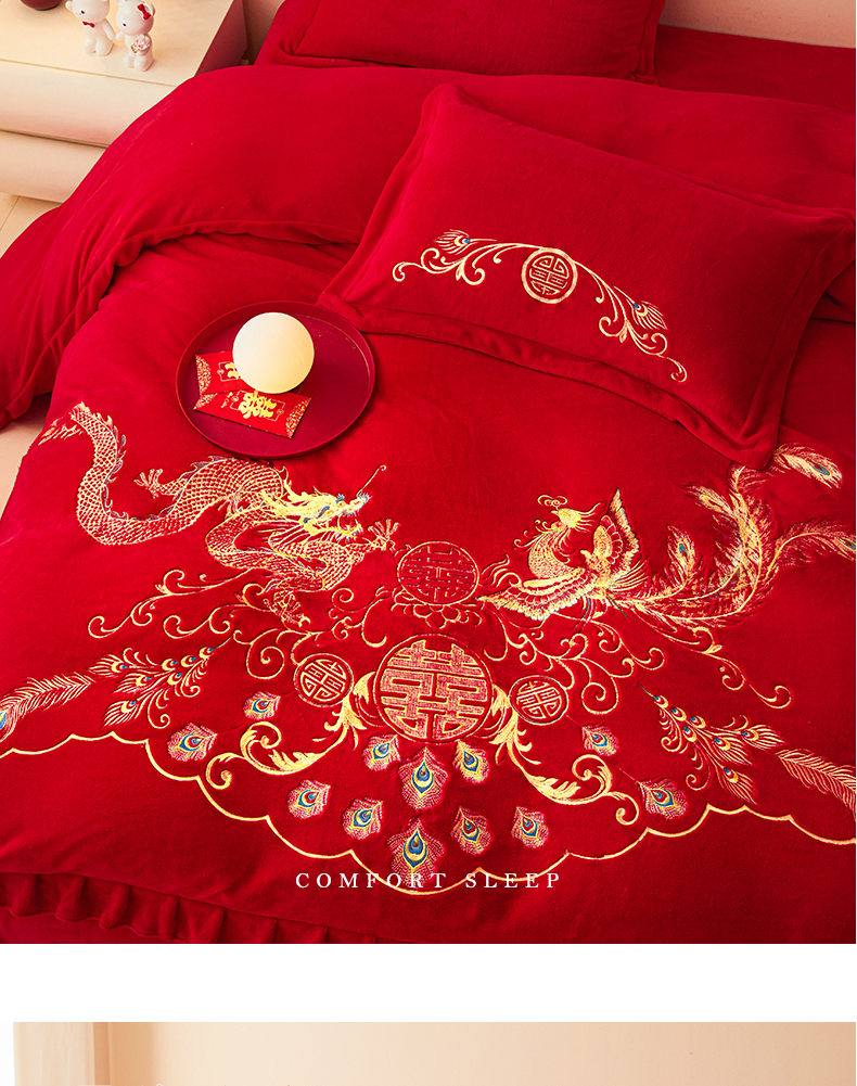 当前位置: 91家纺网 > 商品网购 > 床品套件 > 四件套 > 牛奶绒四件套 > 2025新款高克重花边贴布款牛奶绒婚庆刺绣四件套 牛奶绒花边款-龙凤祥瑞