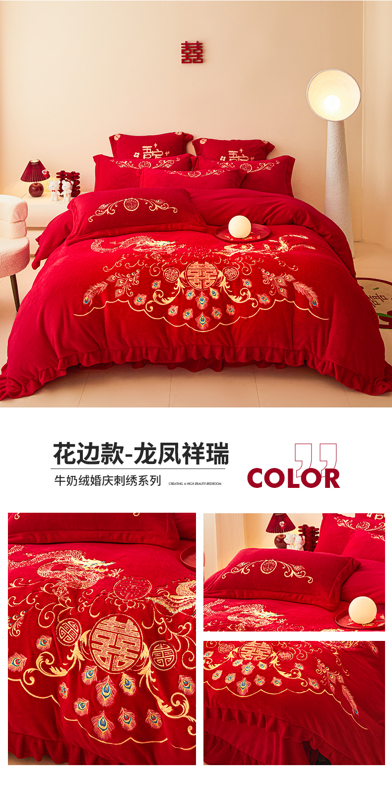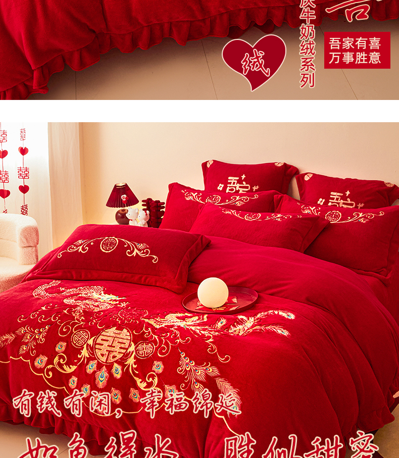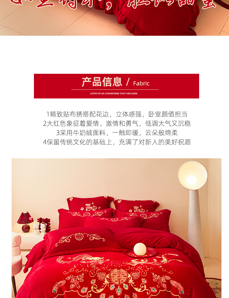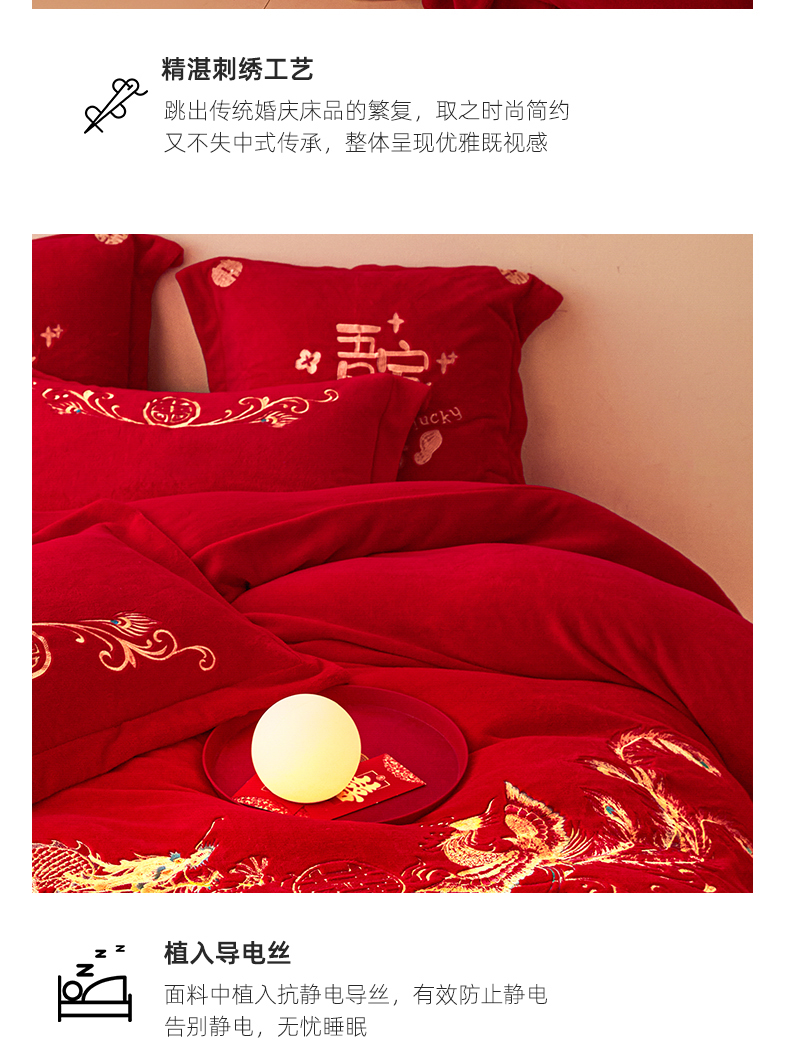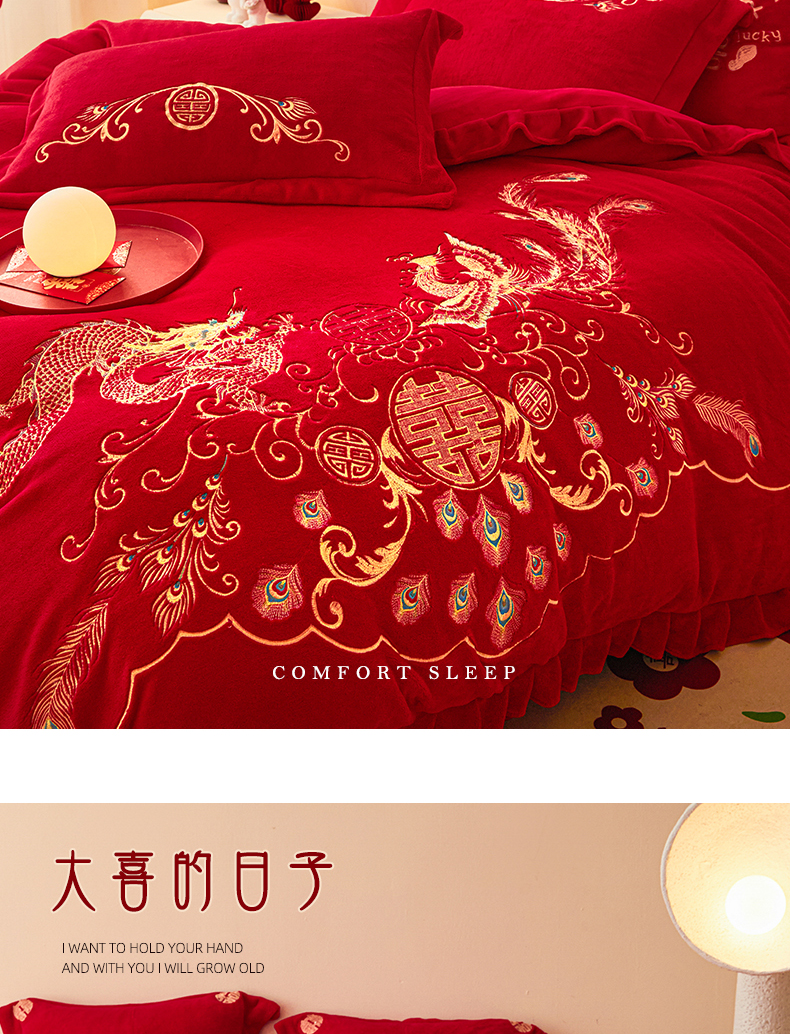 当前位置: 91家纺网 > 商品网购 > 床品套件 > 四件套 > 牛奶绒四件套 > 2025新款高克重花边贴布款牛奶绒婚庆刺绣四件套 牛奶绒花边款-龙凤祥瑞