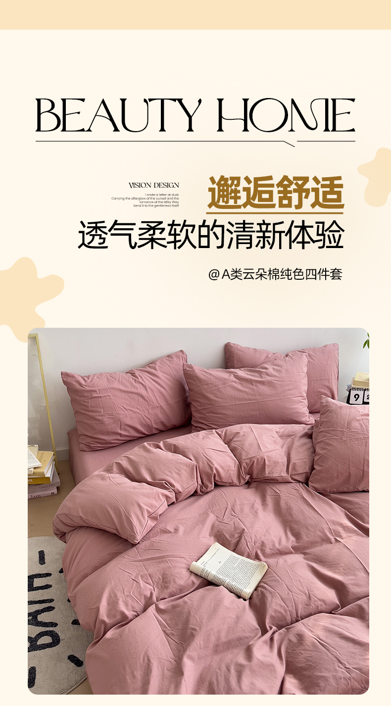 当前位置: 91家纺网 > 商品网购 > 床品套件 > 四件套 > 水洗棉四件套 > 妖妖家纺 2025新款水洗云朵棉纯色四件套 豆沙