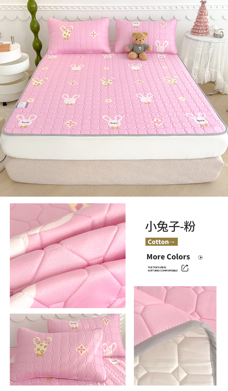 商品名称:2024新款亲肤水洗薄款软床垫防滑床护垫床褥学生垫子 加厚款 小兔子-粉